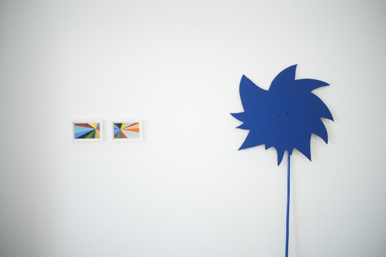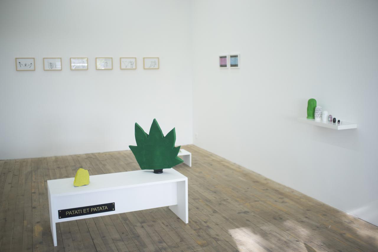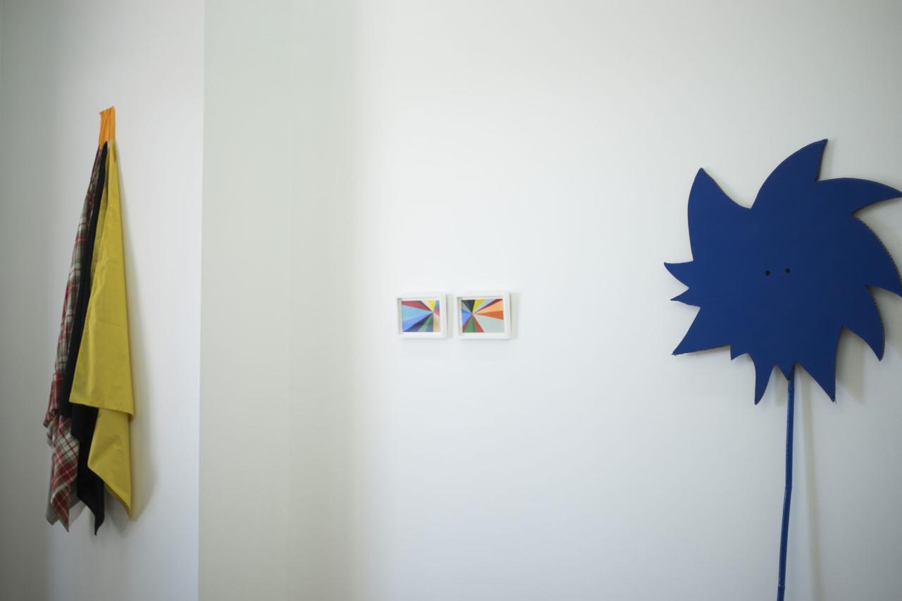 Nous avons fait le choix, dés le départ, de les présenter dans le cadre d’une exposition classique, protocole singulier mais idéal à la construction mentale de ce projet. La hiérarchie de monstration parle ici de peinture, de sculpture, d’objets et d’installation, puis induit les modalités de présentation du film. Il s’agit de les faire exister hors des images. Ces objets parlent de l’avant, du pendant et de l’après du film. Un jeu de va-et-vient est activé entre les dessins, le film et les objets. Réinvestis par les images cinématographiques, les objets parlent de situations extraites d’un autre contexte, le film. Activés comme « accessoires », accompagnateurs de personnages et de situations, ils supportent une narration chargée de ce supplément d’âme qui nous parlent des choses. Ces objets ont donc une double parole, ils oscillent entre forme narrative à regarder et compagnon d’actions et de dialogues pour le film.
