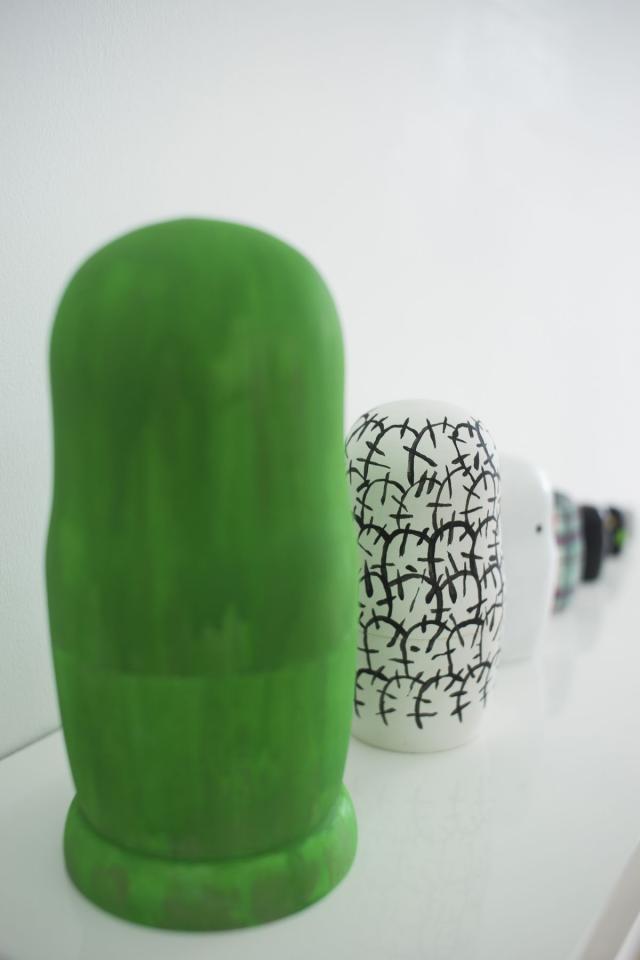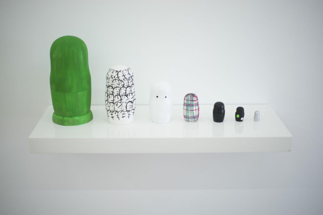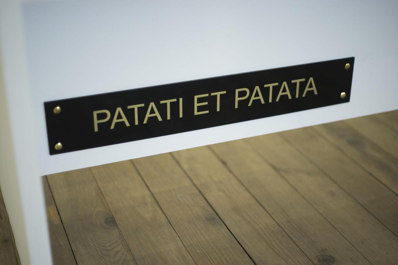 Telle une salle d’attente recueillant le taquin* du film, cet espace provisoire accueille les objets, costumes, images, peintures ayant servi, de près ou de loin, pour les besoins du film. Bocal d’activations, ces éléments font vivre le film pendant et après son tournage. Un scénario permanent et en perpétuel changement. Cet espace est composé d’objets en transition, pensé comme une réserve de formes activées ou désactivées à l’image des poupées russes.