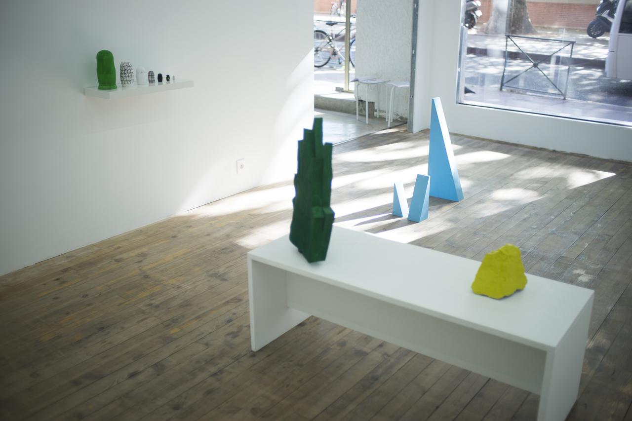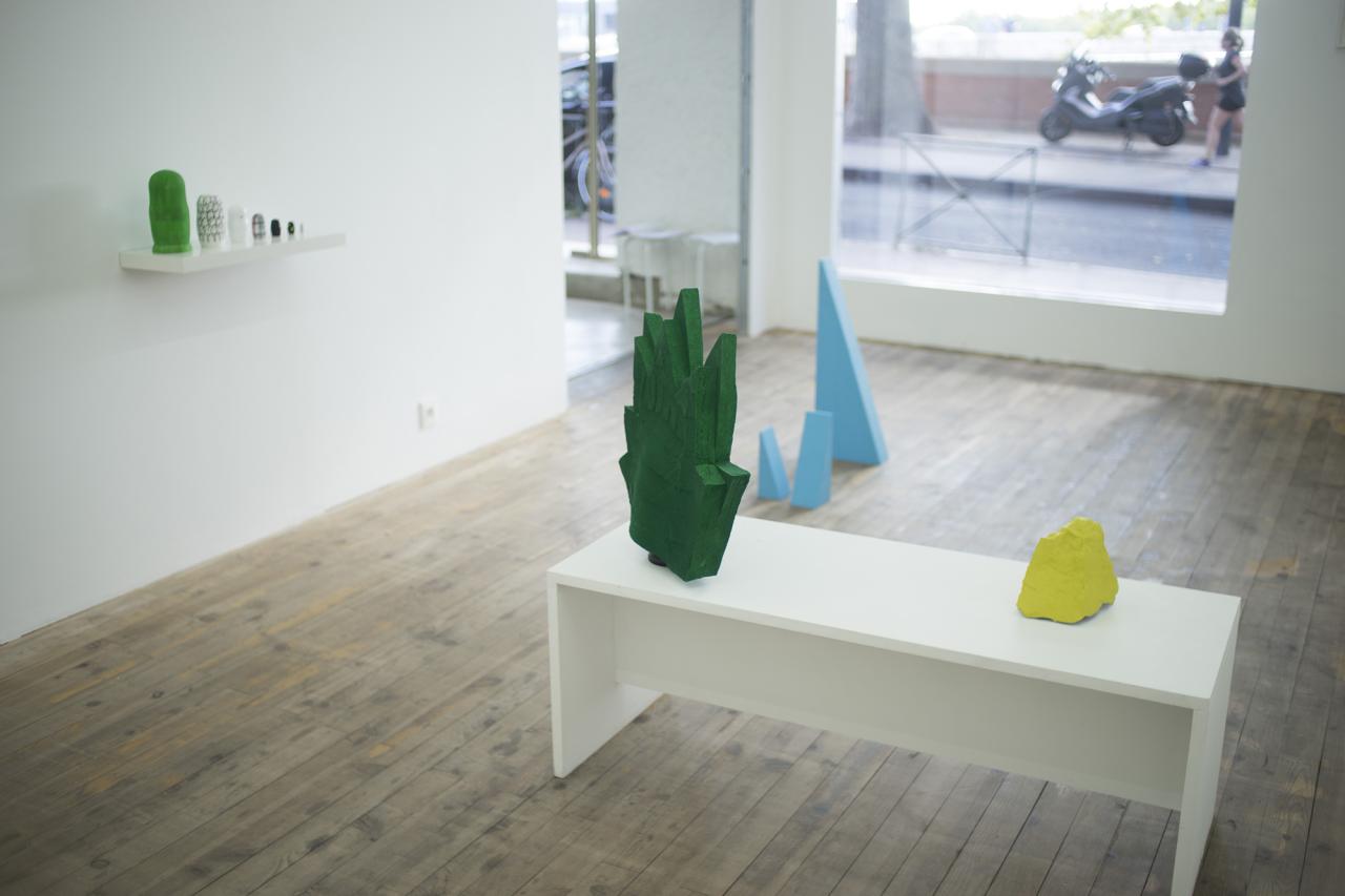 Ces objets, issus du processus de fabrication du film Un ciel couleur laser rose fuschia, ont une présence autonome.