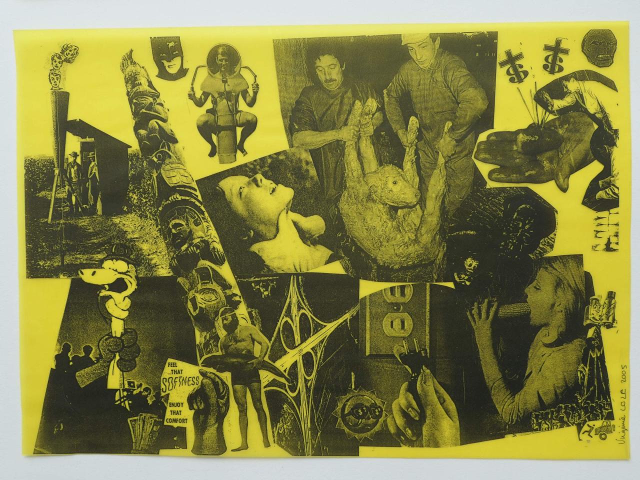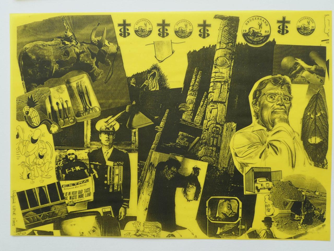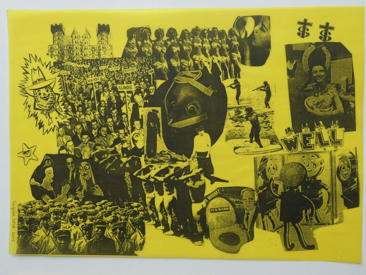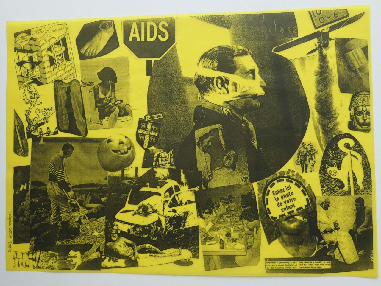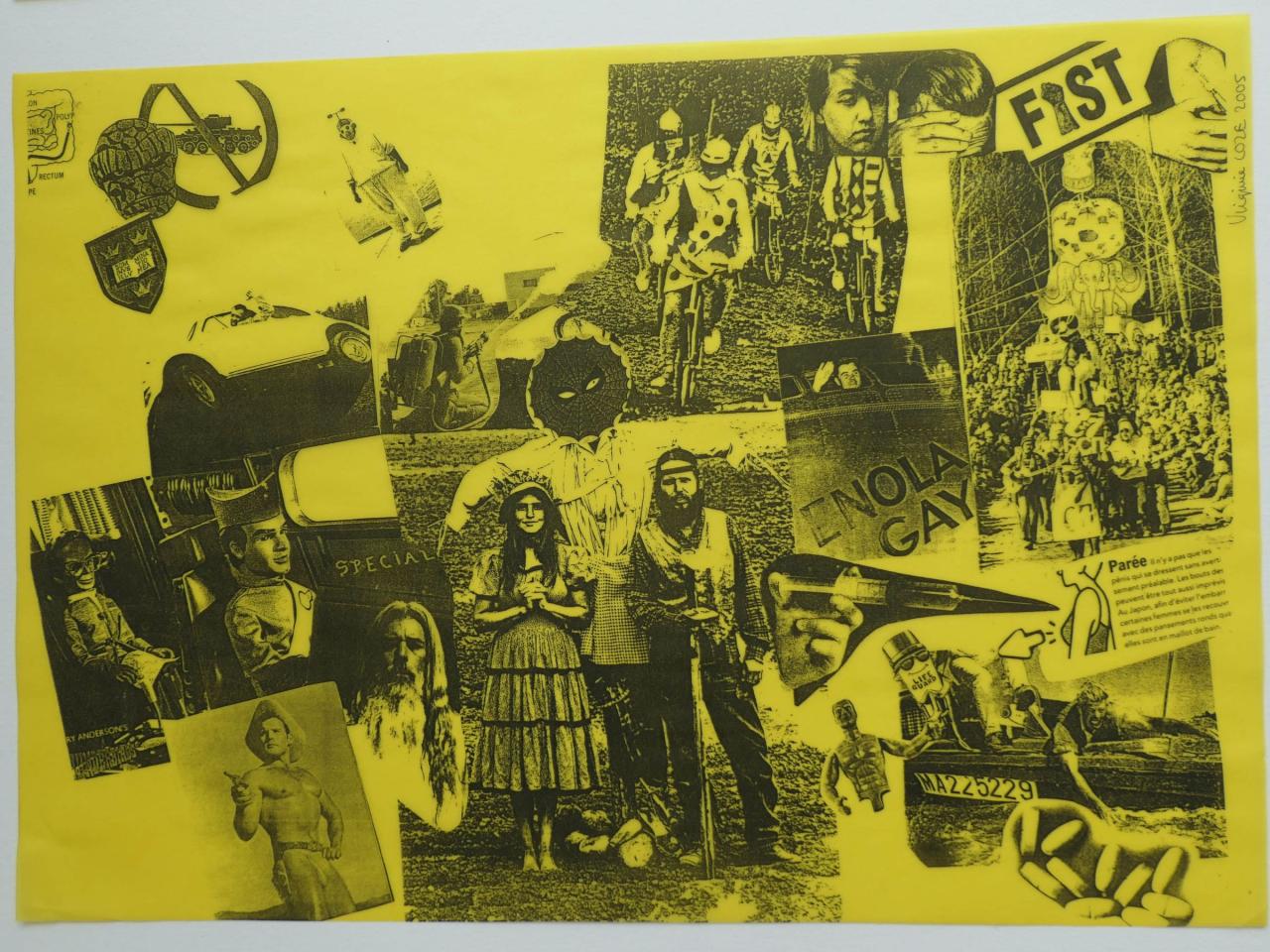 Photocopies sur calque jaune tirée à la feuille, à partir de collage sur papier