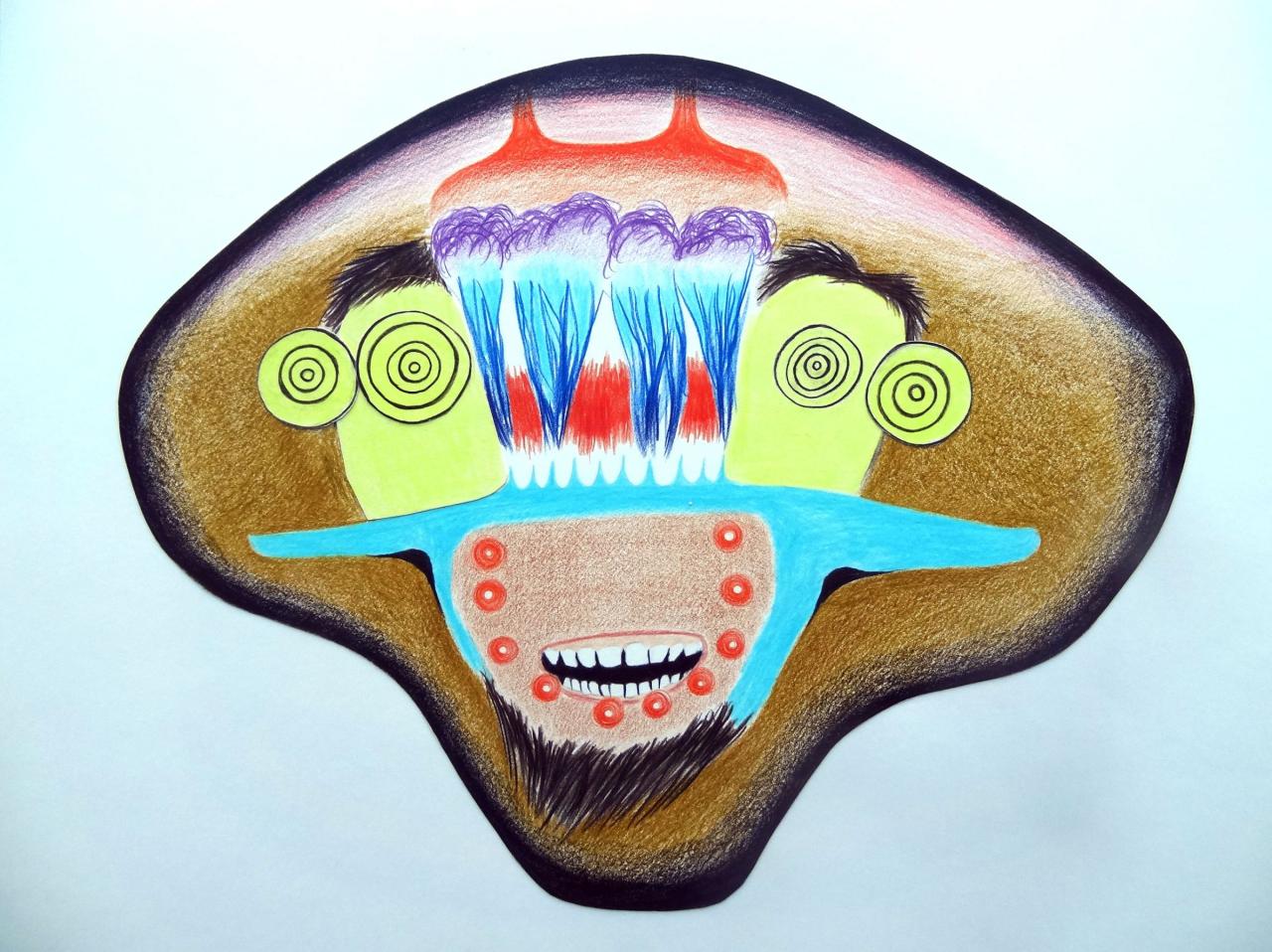 18, 2015, papier marouflé sur papier, crayon de couleur et feutre, 50 x 65 cm