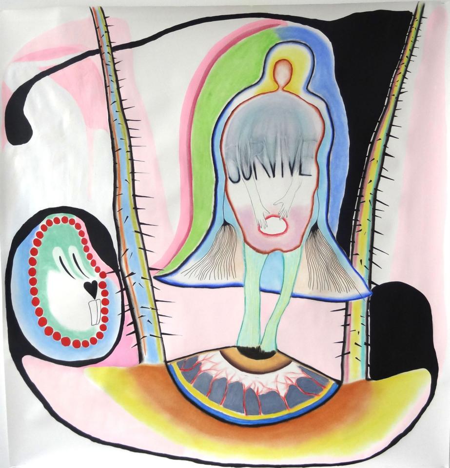 53, 2016, pastel sec, acrylique, crayon de couleur, 150 x 150 cm