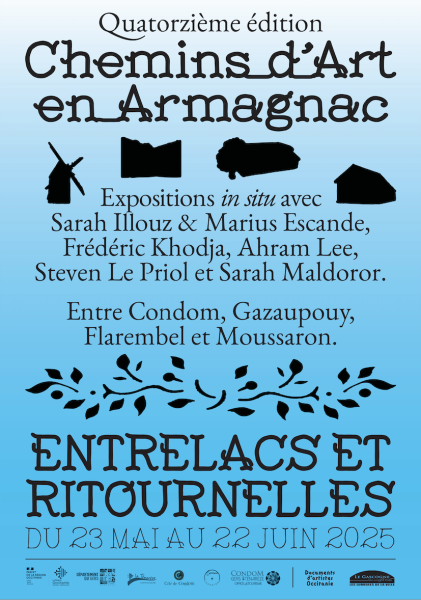 Nous vous invitons du 23 mai 22 juin 2025 dans le Gers aux alentours de Condom à découvrir les expositions de cette 14ème édition de Chemins d’Art en Armagnac : ENTRELACS ET RITOURNELLES.