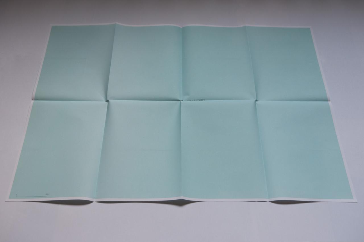 Carte IM, 2018, offset print on recycled paper, 1000 copies to take away, on a limestone, exhibition view Measure the Valleys, 13ème Parcours d’art contemporain en vallée du Lot, photo Yohann Gozard
