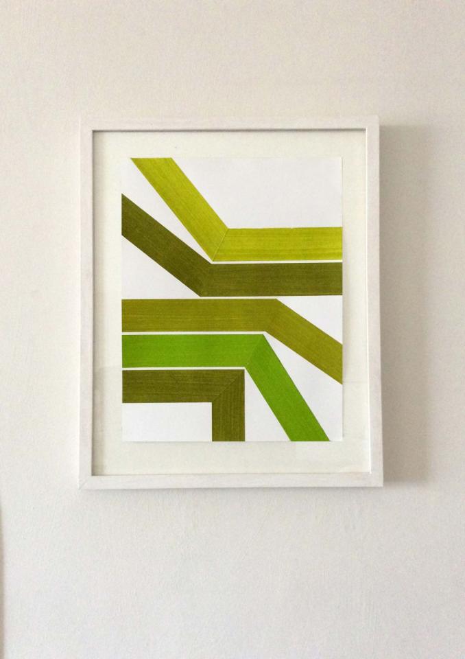 Des papiers sont préalablement peints à l’aide d’un gros pinceau brosse recouvrant entièrement la feuille de papier et laissant apparaître de fines lignes aléatoires.