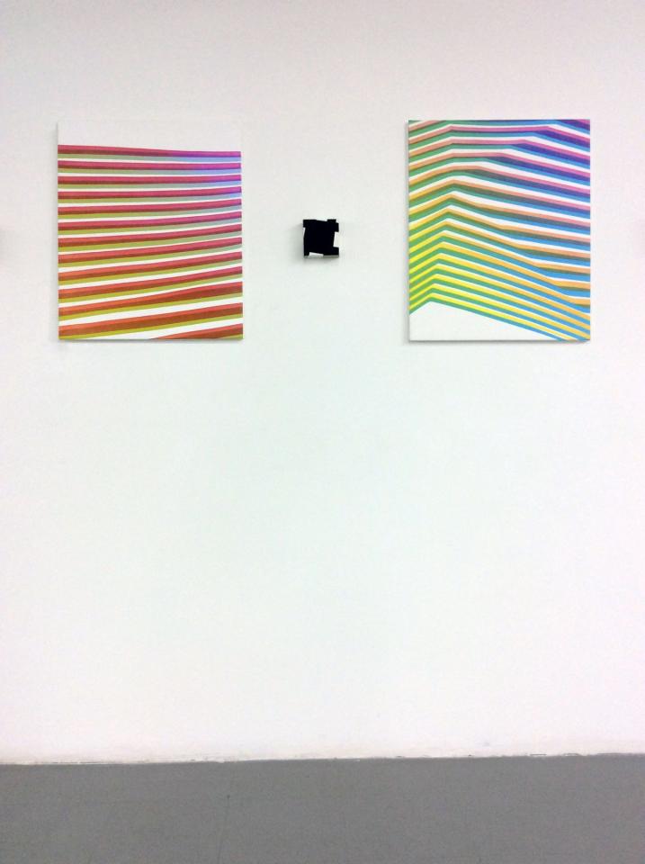 Accrochage d’une sélection de gouaches tirée de la série In Situ et œuvres de Philippe Lamy et Véronique Barthe issues de la collection personnelle de l’artiste ; ensemble de peintures tirées de la série Ne pas plier et œuvres de Pierre Fisher.