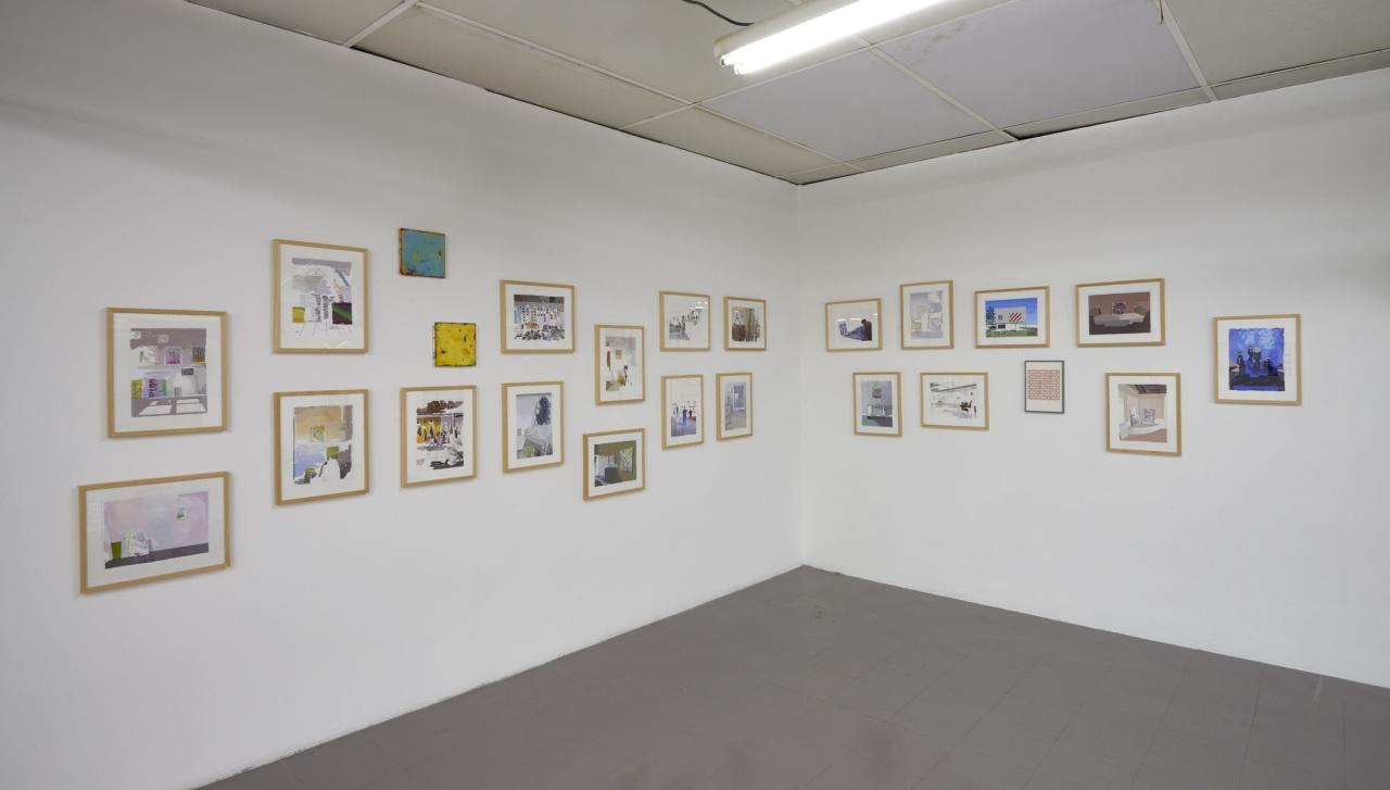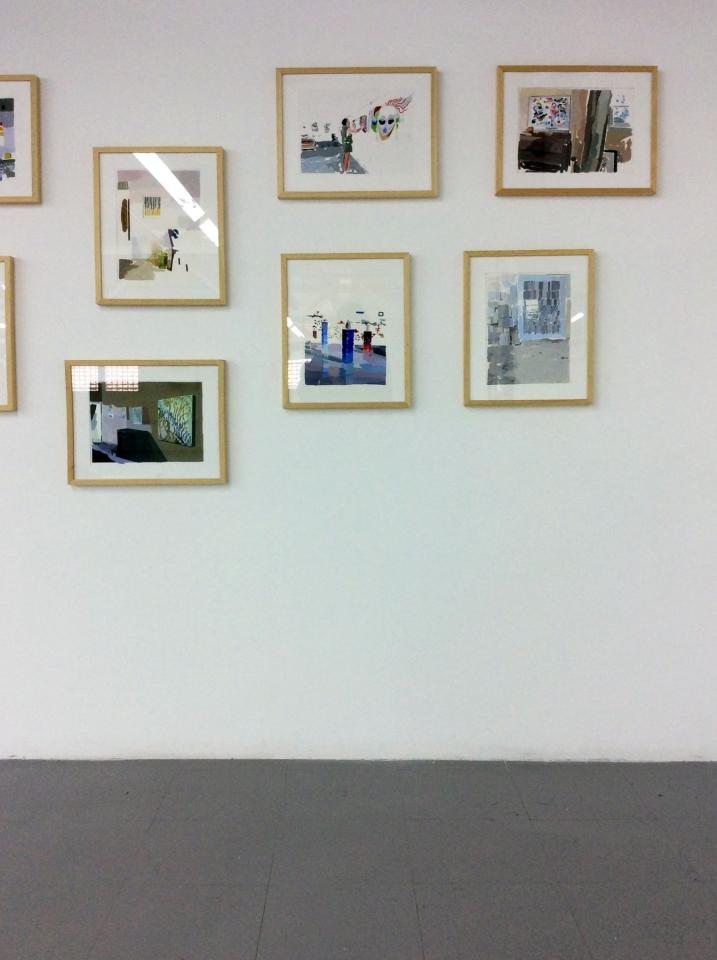 Accrochage d’une sélection de gouaches tirée de la série In Situ et œuvres de Philippe Lamy et Véronique Barthe issues de la collection personnelle de l’artiste, photo Damien Aspe