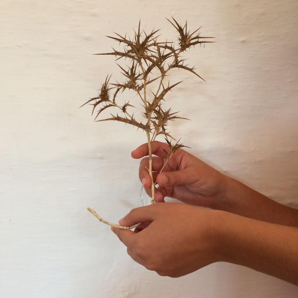À Minorque, les ressources naturelles sont strictement protégées et l’eau potable, la grande majorité des biens, des matières et des aliments proviennent du continent. L’artiste s’est astreinte à un protocole l’amenant à travailler uniquement avec ce qu’elle a pu trouver et collecter là-bas – matériaux et savoirs faire – afin de créer les prémices d’une culture matérielle à la fois fictionnelle et concrète.