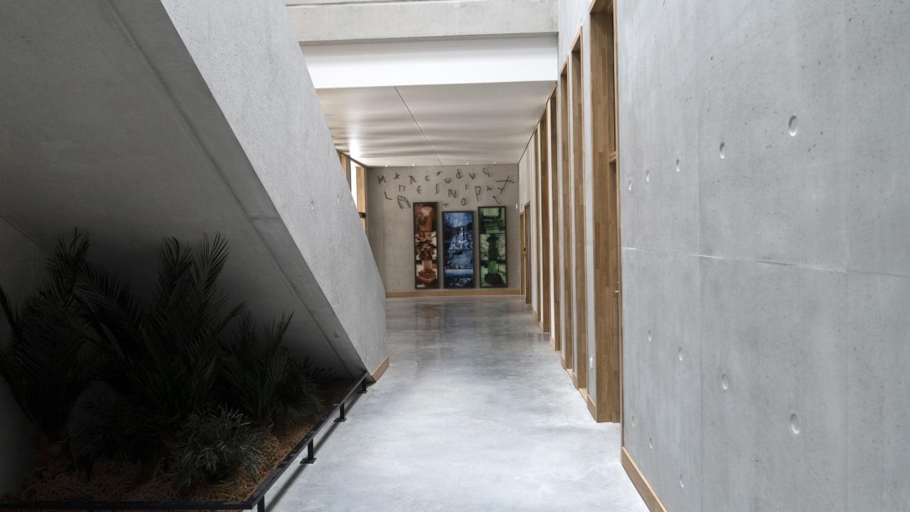 C’est dans la volonté de rendre présente l’histoire de ces vestiges, fragments et graffitis gravés, que l’œuvre prend sens. Elle tisse un lien étroit entre l’histoire du territoire et les enjeux de la médiathèque, le vestige et le savoir, ainsi qu’entre les images et les mots. Une place forte est donnée à l’ancrage historique et géographique que propose ce territoire attractif en terme d’archéologie.
