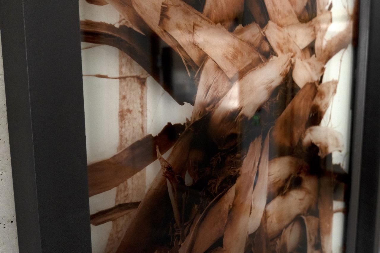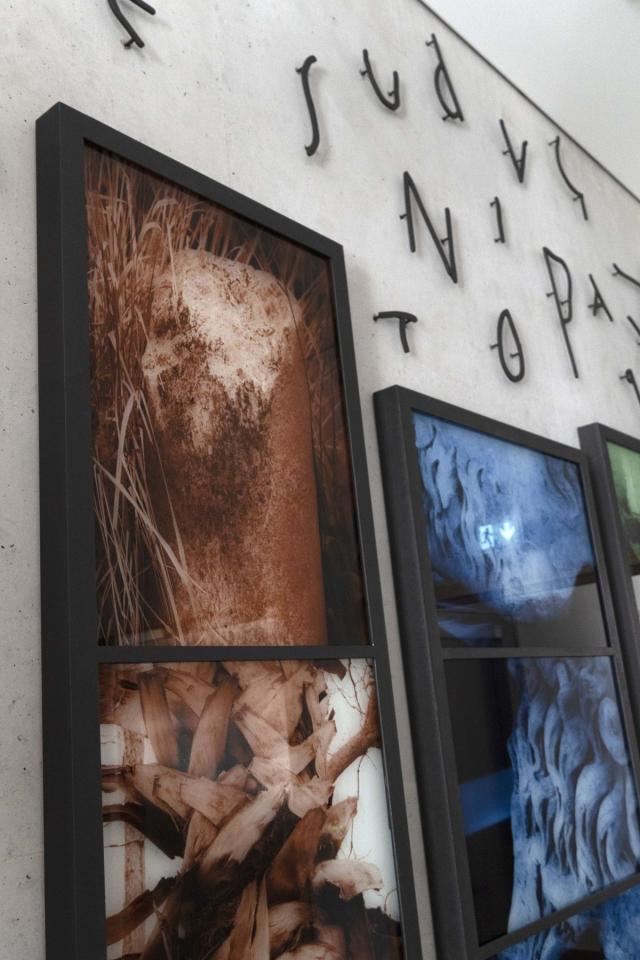 Cette installation photographique s’intègre dans l’architecture par les impressions sur verre verticales et colorées qui résonnent avec les largeurs des cloisons de verre. Il renvoie à la colonne en ruine, offrant une lecture en strates des images, à la fois concrètes et symboliques.