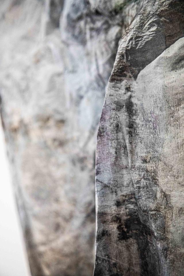 Suaires de Ruines, 2024, tirage sur papier lambda, extraction de la pellicule photographique numérique, 90 x 135 cm, vues de l’exposition collective Sourde Résistance, dans le cadre du Festival international d’art contemporain Sète-Lisboa, Chapelle du Quartier Haut, Sète, photos Eloïse Legay, détails