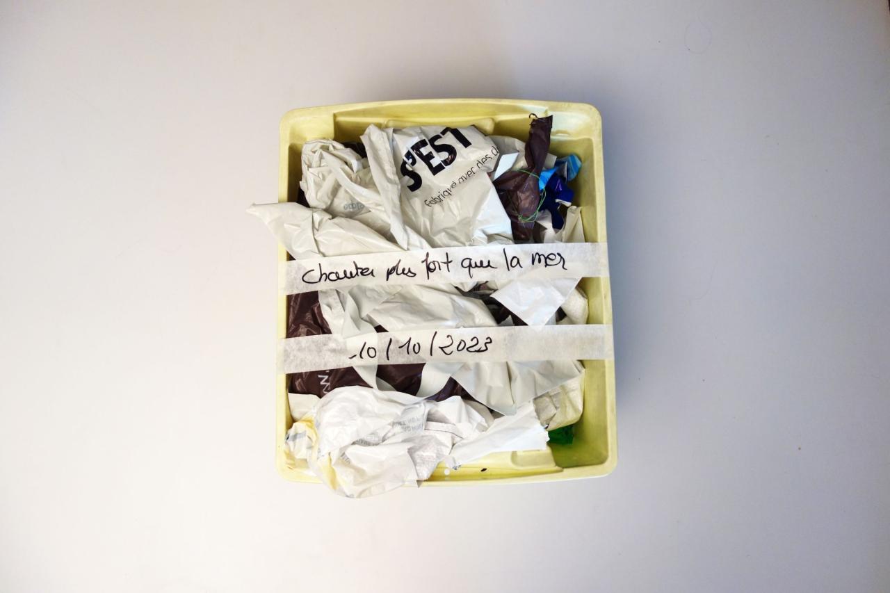 Des sacs plastiques en guise d’accessoire, de la serviette de plage à la robe de cantatrice; accompagnent cette tentation trop grande de chanter. Naviguer entre chanter faux et juste, le chant et la parole; la chanson populaire et l’opéra, que reste-t-il encore à dire, à écouter, à supporter.