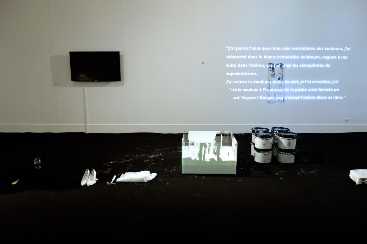 À partir des notions de couleur, de forme et de matière, ma réfléxion évoque tout naturellement des questions liées à la peinture et notamment au concept de Suprematisme crée par Kasimir Malévitch, par des fragments de ses écrits.