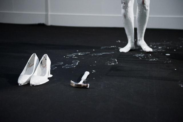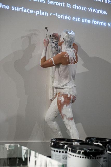 Conçue en réponse à l’invitation des Abattoirs, Frac-Musée Occitanie Toulouse, à venir s’inscrire dans l’exposition collective So White, Le Fond, la Forme et la Couleur est une performance mais également une installation : l’installation était préalable à la performance, elle à été modifiée pendant la performance et puis elle a été visible le temps de l’exposition.
