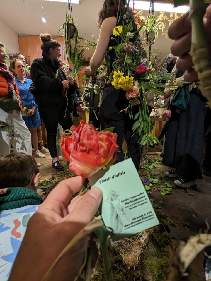 Plaisir d’offrir, 20 mars 2024, performance, 25 minutes, Alocasia fleuriste, Toulouse, photo Camille Fourat