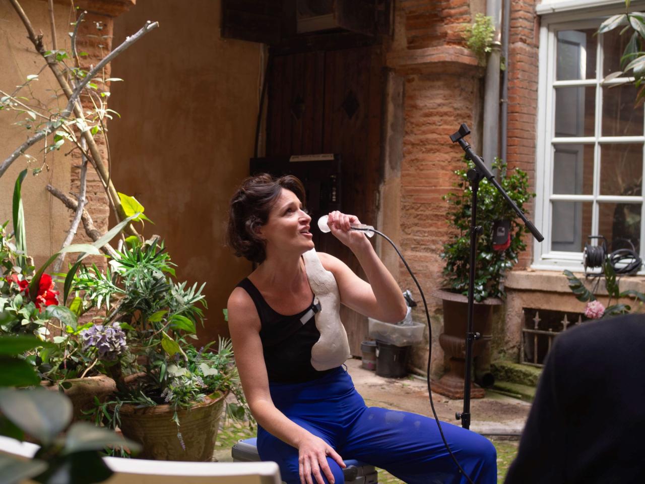 Émilie Franceschin, Tu ne te souviendras pas #4, 2024, conférence-performance, Salon des éditons d’art en Occitanie, Toulouse, photo Coralie Cruchet