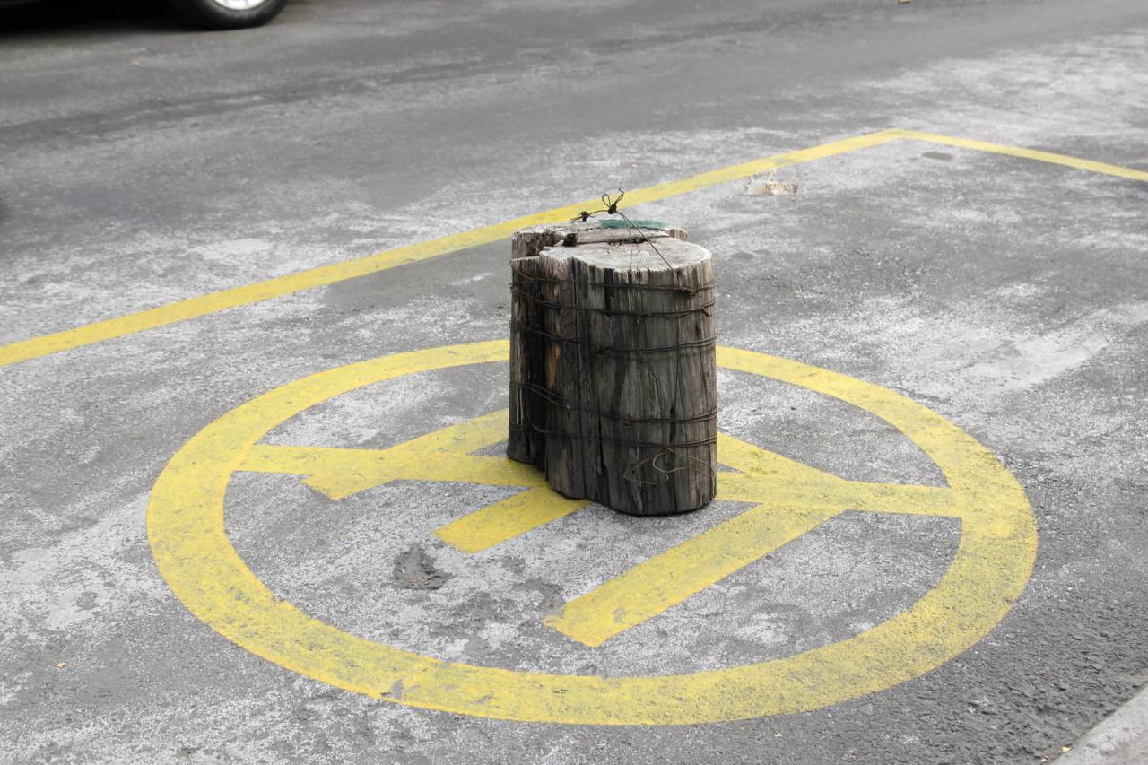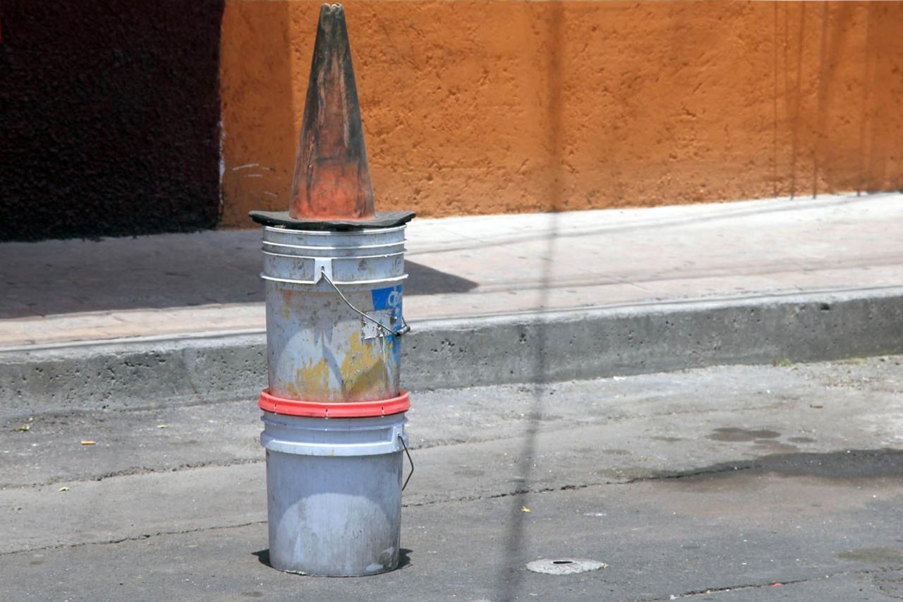 À Mexico, dans les rues vouées au commerce du centre historique et du quartier de la Merced, une pratique se répète avec une grande fréquence. Des objets ou des constructions minimales se trouvent déposés au bord du trottoir de façon à empêcher le stationnement des voitures. Ces dépôts sur la voie sont si nombreux et si variés que j’ai pu les photographier sous le mode de la collecte ou du catalogue. Interpelée par leur aspect de sculpture improvisée et urbaine, faites d’objets ou de matériaux sans valeur, j’ai supposé que c’étaient les commerçants ou les artisans qui s’approprient de cette façon une partie de l’espace public pour que l’entrée de leur magasin ou de leur atelier reste visible et accessible. Mais cette pratique n’est pas seulement le fait du voisinage, elle est surtout celui d’une organisation globale connue sous le nom de sa main-d’œuvre, les « viene viene ». De cette manière officieuse, bien que complètement assimilée dans la culture de la ville, des emplacements sont réservés pour contrôler et monnayer le stationnement des voitures. Par ailleurs et en conséquence, les habitants des quartiers plus résidentiels se livrent à la même chose, pour garder leur place de parking devant chez eux, mais aussi, comme les commerçants et artisans, pour empêcher les “viene viene” d’occuper la place. Cette série, motivée au départ par la forme plastique d’un usage de l’espace public et sa pratique par ses citoyens, s’est précisée en intégrant cette autre dimension, délictueuse et stratégique, à priori mystérieuse pour un étranger. Elle témoigne finalement d’une forme de lutte codifiée pour un territoire et de la multiplicité de ses signes. Le titre associe des mots français et la ponctuation interrogative espagnole.