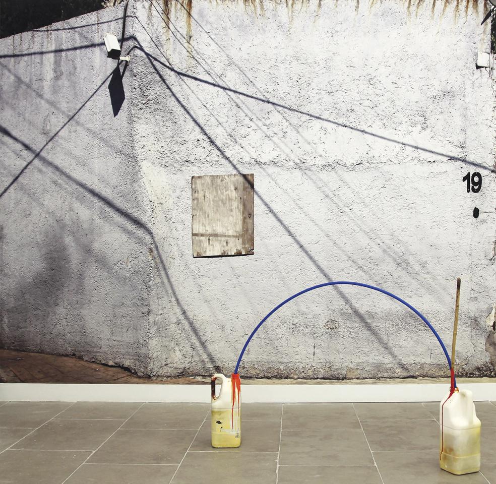 Apartalugar bidon, 2018, céramique et techniques mixtes, 50 x 120 x 75 cm, réalisé dans le cadre d'une résidence à Artelinea