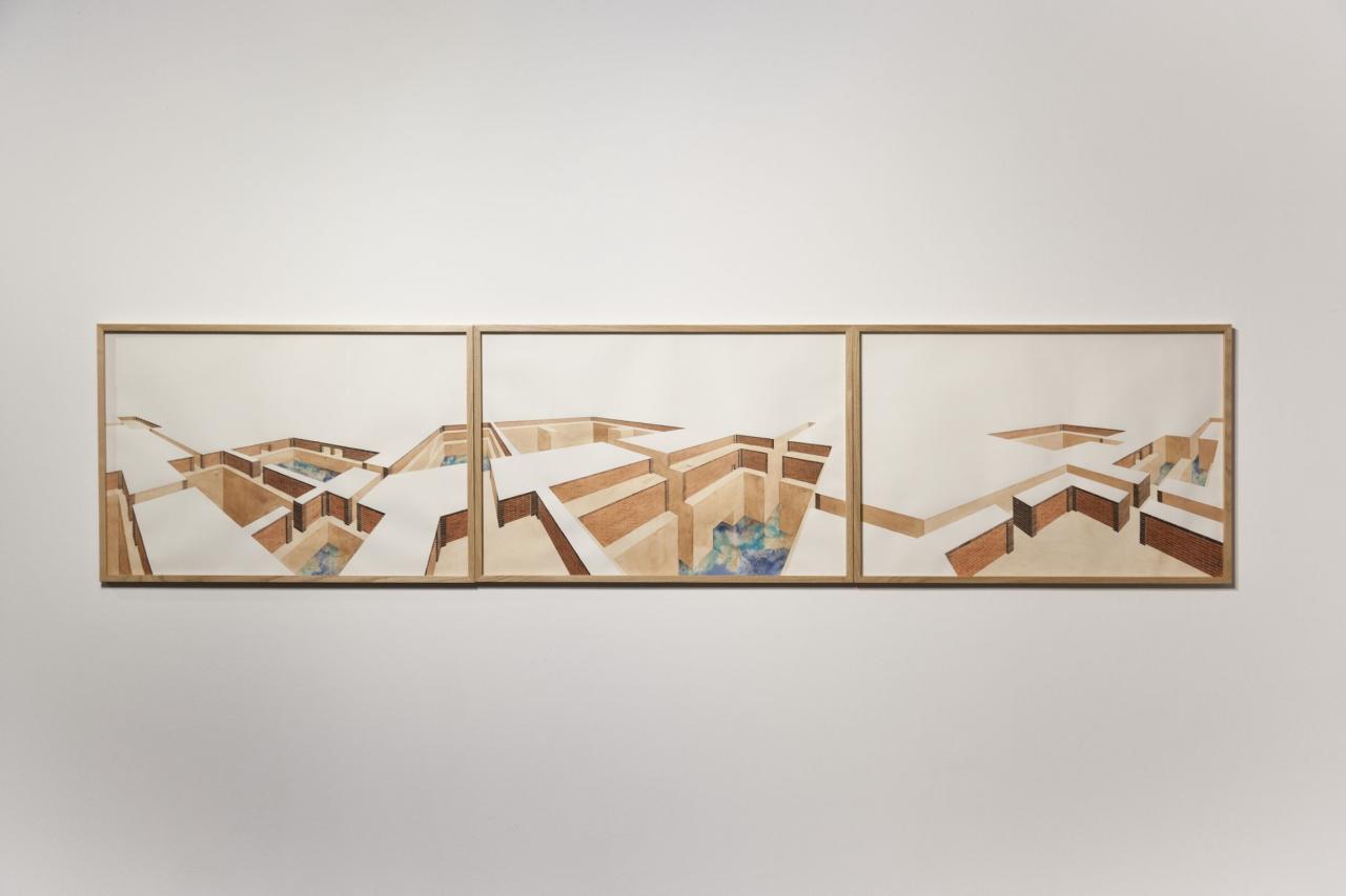 Les champs d’Asphodèles (1), 2019, aquarelle sur papier Arches 356 g, triptyque, 100 × 180 cm, collection Artothèque d’Angers