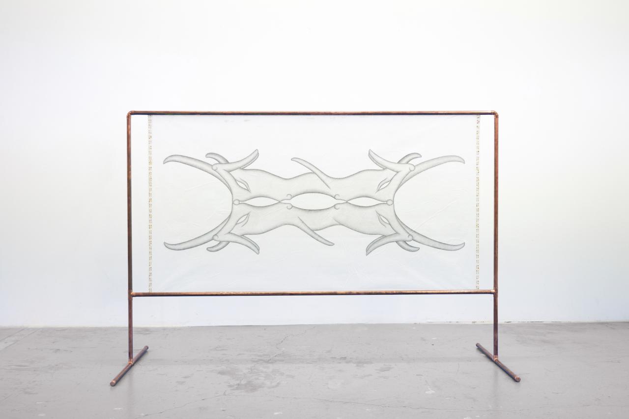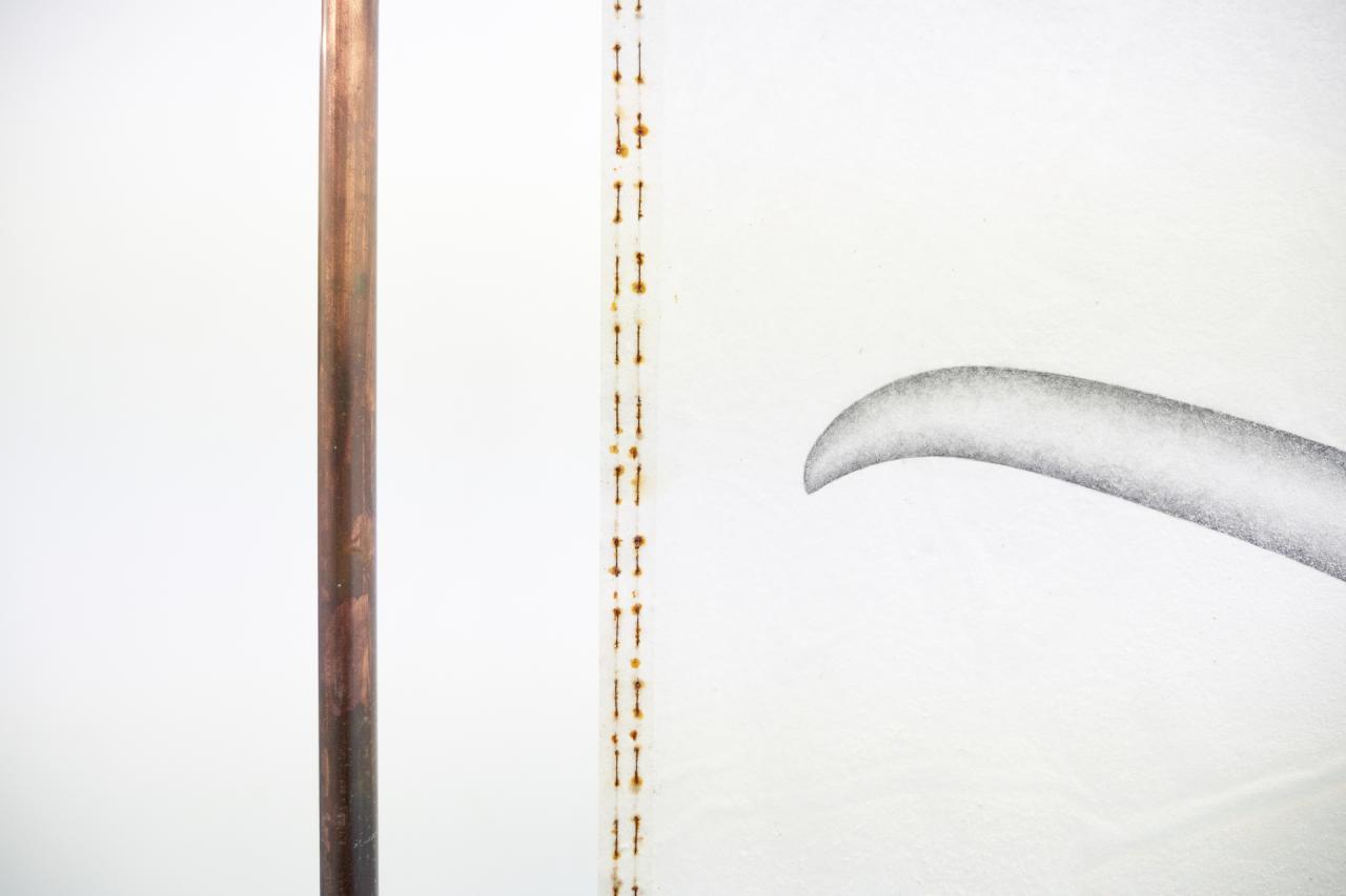 Le dispositif de monstration, qui fait écho au mobilier urbain, semble autant marquer la nécessaire régulation des corps dans l’espace public que suggérer un potentiel de résistance. Ces installations, tout à la fois objets de contrainte et d’expression, se révèlent comme des instruments de protestation, convoquant la dualité entre l’ordre imposé et la liberté d’expression.