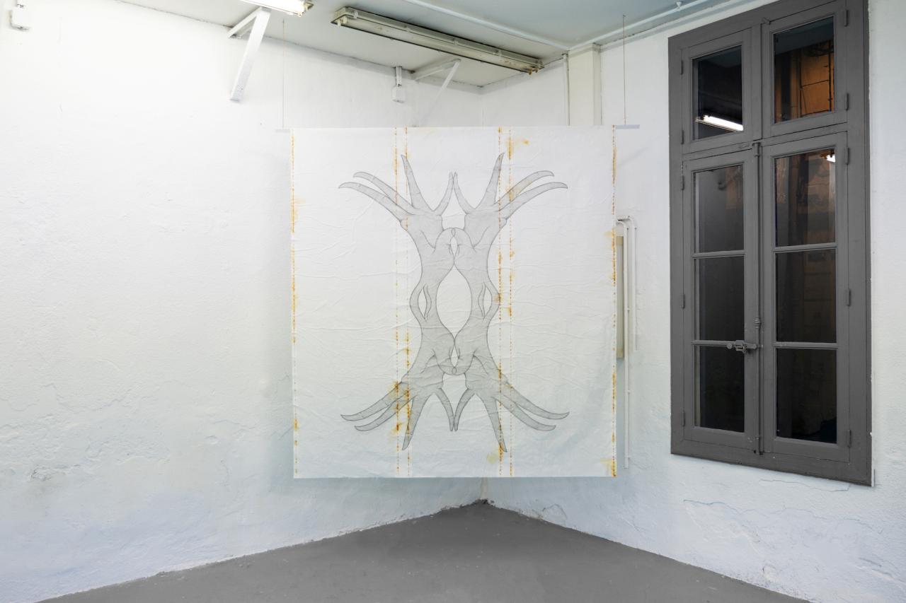 Protest Sign est une série de dessins représentant des gestes de la main organisés symétriquement, tels des symboles en résonance avec des formes ésotériques et mystiques. Chaque geste, dans sa singularité, renvoie à un signe dont la signification fluctue selon les cultures, les traditions ou les contextes, ouvrant ainsi un champ d’interprétations multiples et souvent ambiguës. Cette multiplicité de lectures invite à une réflexion sur la subjectivité et l’incertitude de nos perceptions.