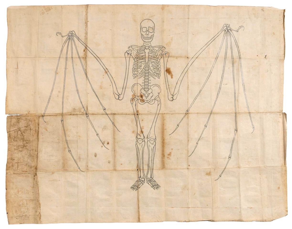 What is like to be a bat, 2022, dessin au graphite sur le verso d’une carte ancienne