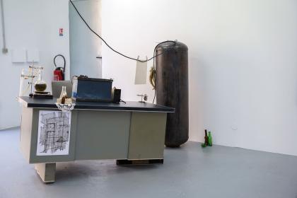 Marie Ladonne : Tu évoques régulièrement l’idée de la ruine dans nos échanges ; et les mises en scène de tes installations flirtent souvent avec des formes et des espaces en désespérance, en déréliction, à l’abandon, comme des ruines contemporaines, industrielles et ferrailleuses, à l’image de ce laboratoire/atelier que tu présentes ici.