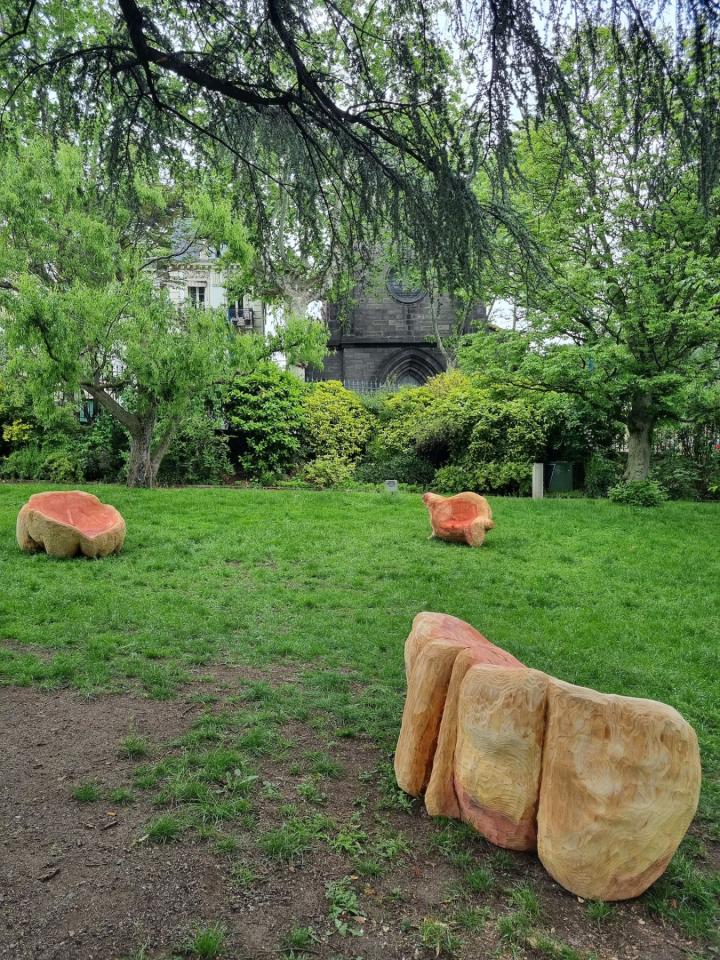 Les Hôtes, 2024, sculptures dans l’espace public, Jardin Lecoq, Clermont-Ferrand