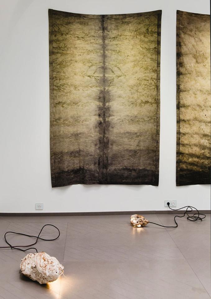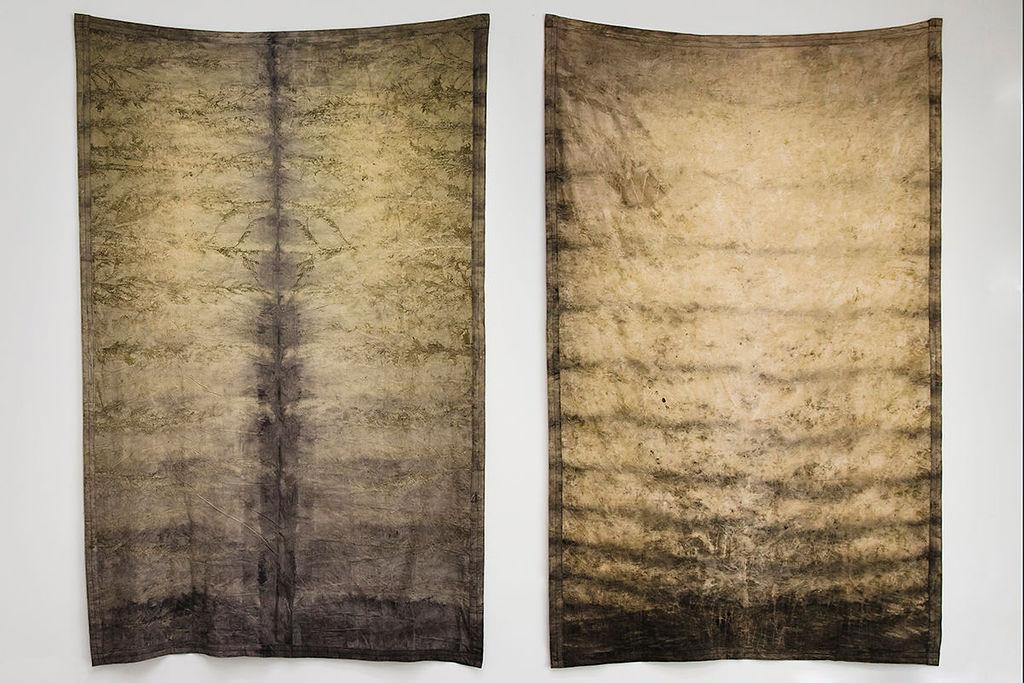 Bartàs, 2019, teintures végétales sur draps, vue de l’exposition collective Mais il y a ce lieu qui nous maintient, 2019, Mécènes du Sud Montpellier-Sète-Béziers, Montpellier, photo Élise Campion