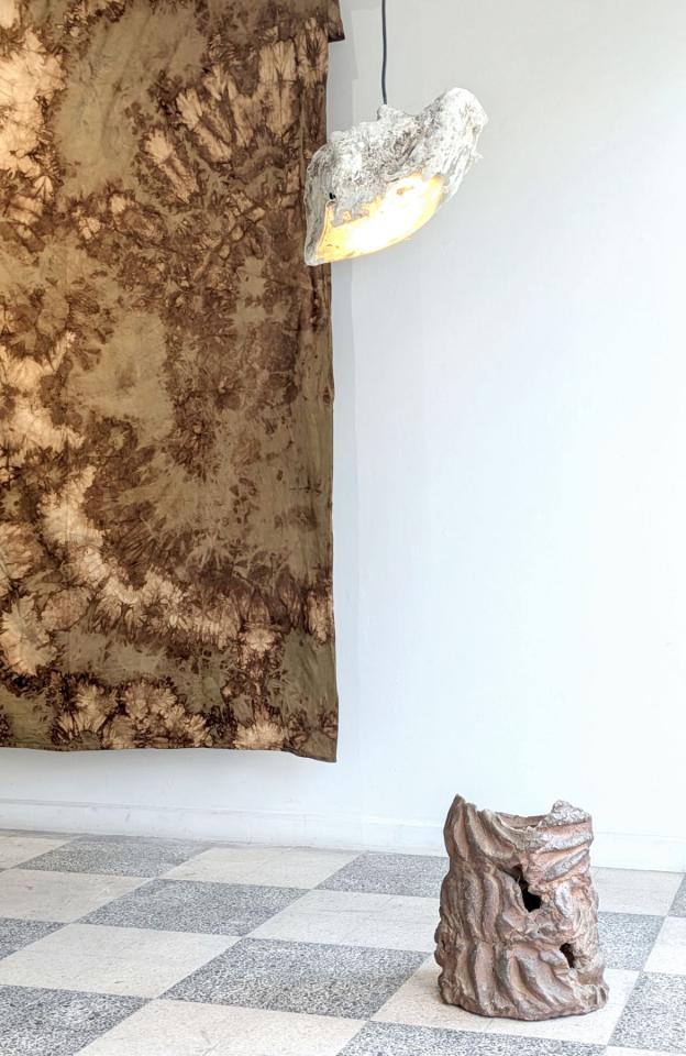Etablis, Fût, Braîches, 2024, installation, vue de l’exposition collective Une sourde résistance, 2024, Salto, Lisbonne, Portugal