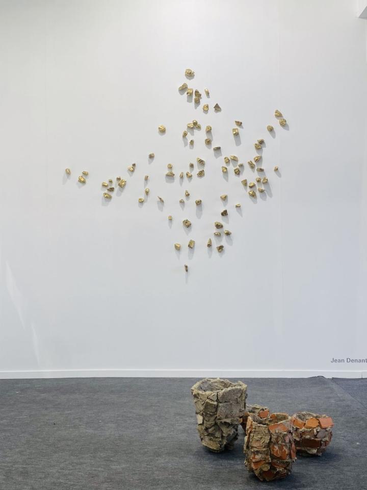 Le dénominateur commun dans le travail des deux artistes est l’exploration de la matérialité. Jean Denant expérimente les matériaux de construction en leur conférant une dimension artistique qui génère une contradiction intentionnelle entre l’importance du sens et la modestie des éléments utilisés. Dans son travail, il défie les conventions établies et brouille les frontières entre art et réalité, en phase avec les approches de la philosophie post-structuraliste.