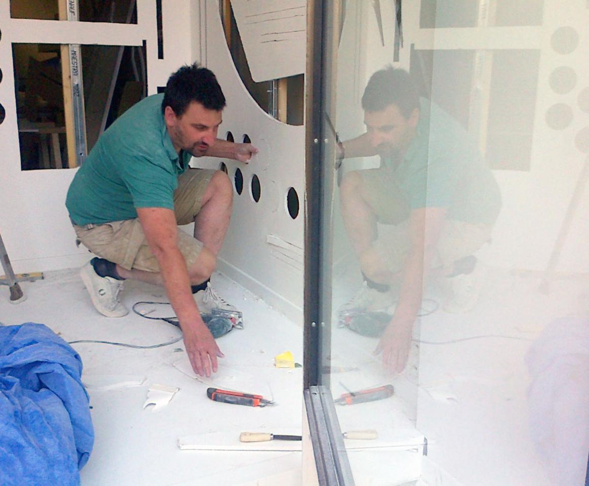 Découpe de placoplatre, assemblage et réserve