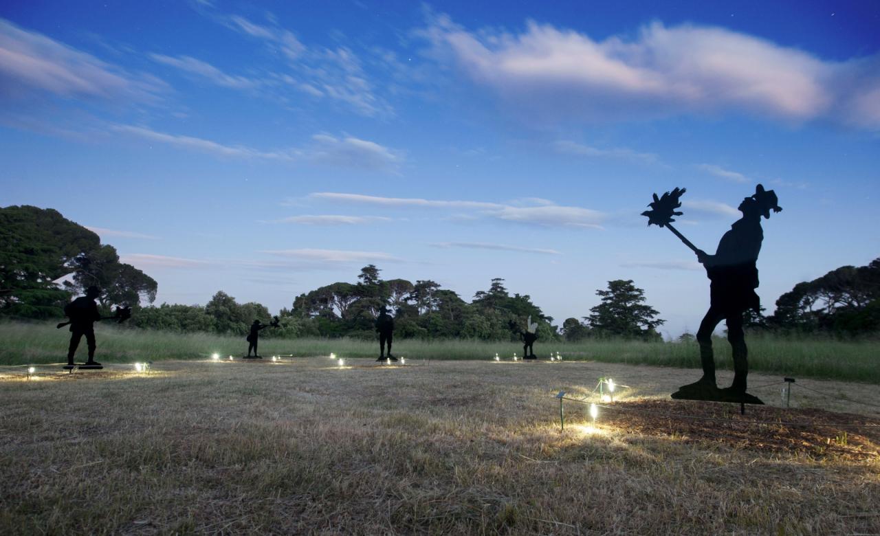 Les Bredouillards, 2015, métal, peinture noire, vue de l’exposition personnelle, Centre national du microfilm, château d’Espeyran, 2015, photo Morgan Laverre
