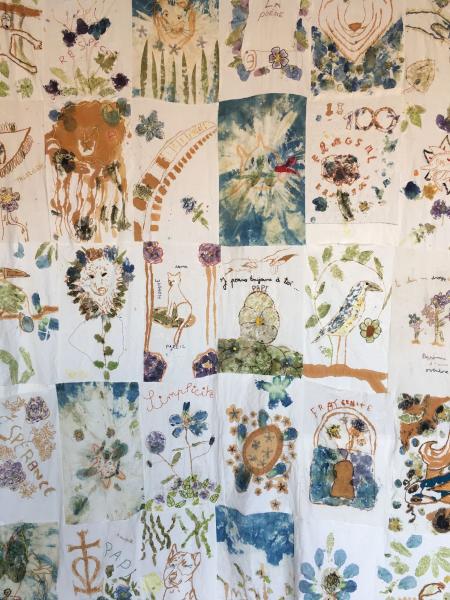 Teinture végétale, impression végétale, saponification à froid, dessin naturaliste, broderie, couture, draps et textiles anciens, fleurs séchées et fraîches, pigments naturels, mordants, argiles, cire, huile végétale, plantes tinctoriales, fibre cellulosique, coton, lin, plantes, mercerie de seconde main, papier artisanal, dessin, peinture, installation, savoir-faires anciens et domestiques.