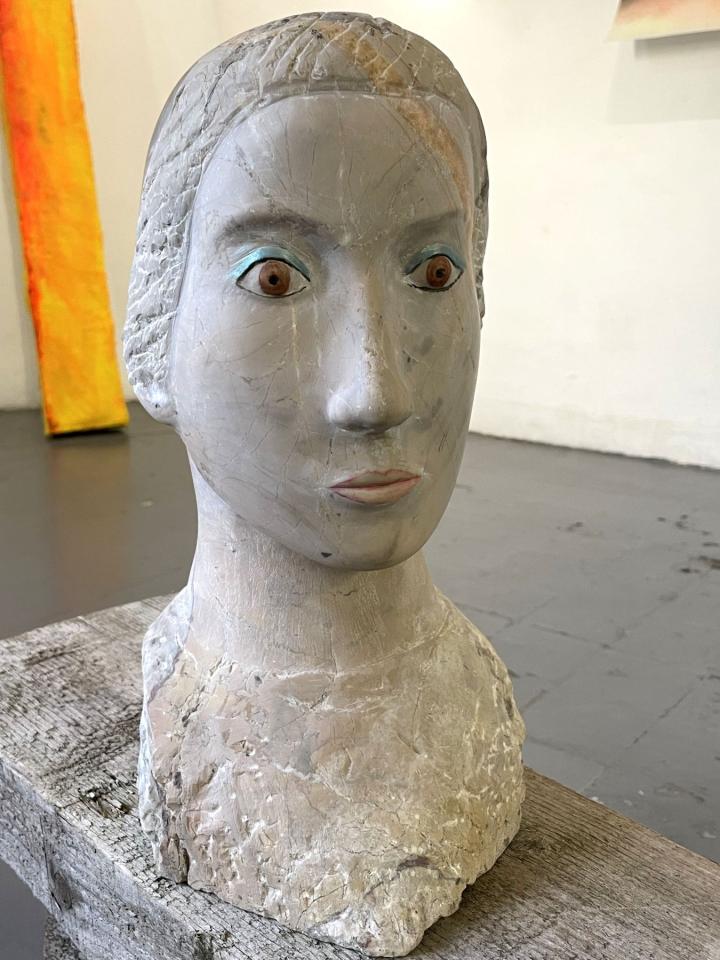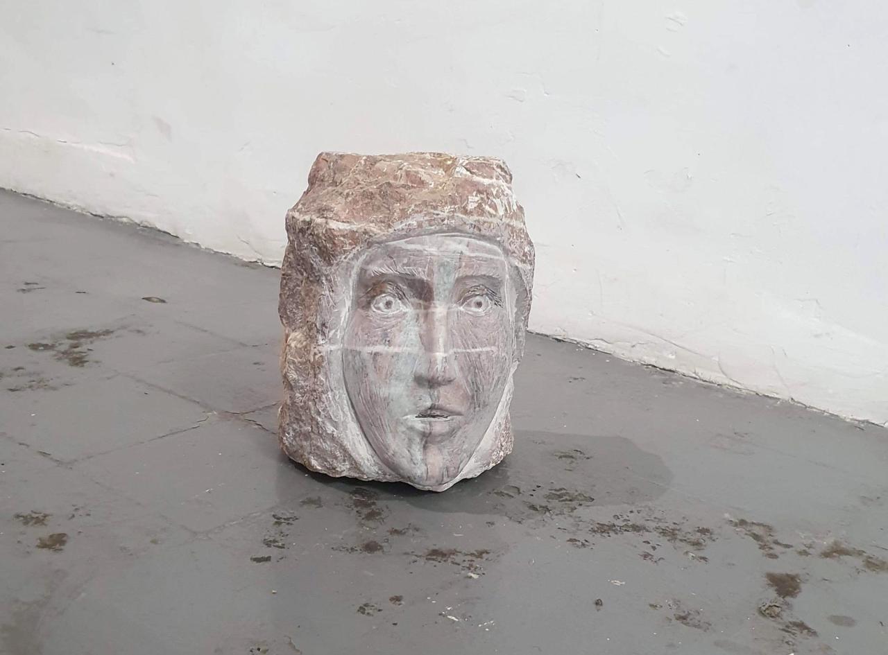 Geneviève 2, 2022, marbre, 40 x 20 x 20 cm, vue de l’exposition Con moto, 2022, Le Salon Reçoit, Toulouse