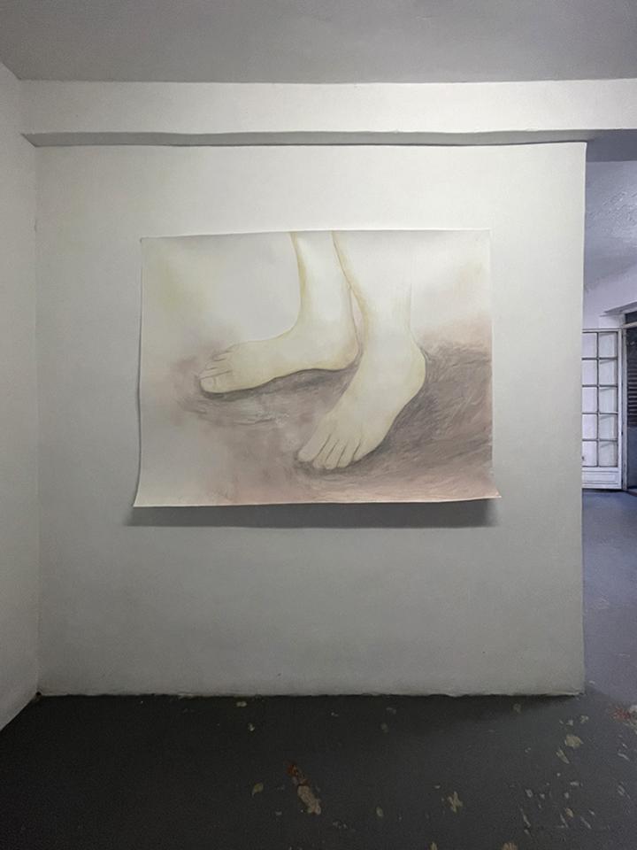 Simple réalité, 2022, peinture sur papier, 120 x 150 cm, vue de l’exposition Con moto, 2022, Le Salon Reçoit, Toulouse