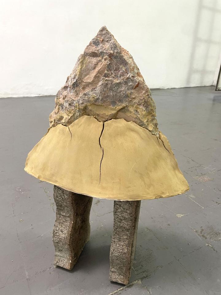 Sans titre, 2022, marbre, terre et béton, 50 x 20 x 30 cm, vvue de l’exposition Con moto, 2022, Le Salon Reçoit, Toulouse
