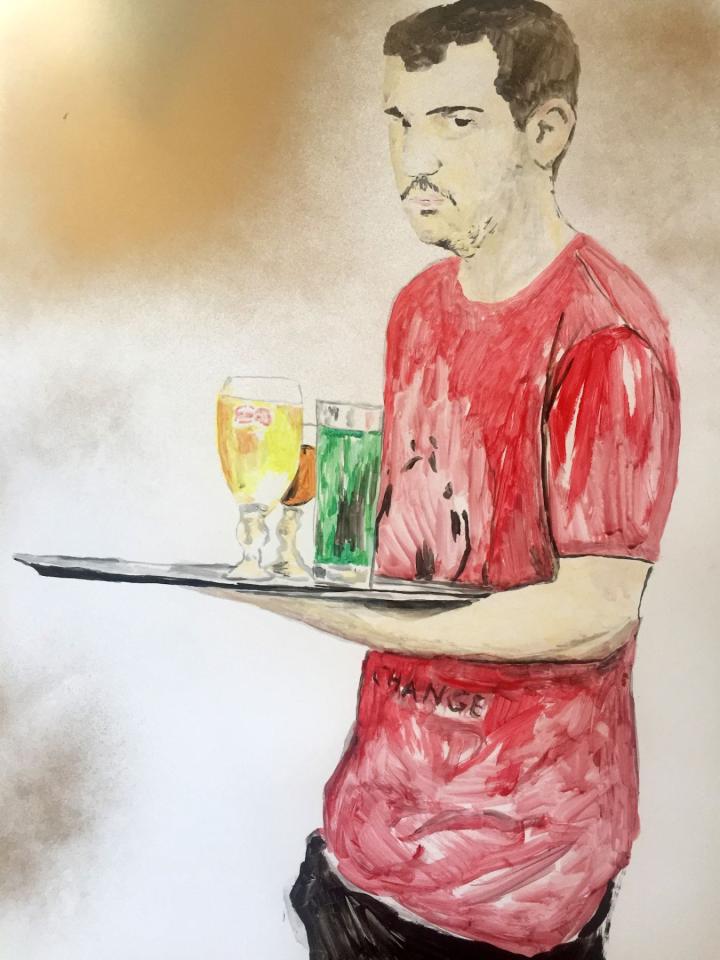Un demi avec mes amis, 2021, peinture sur papier, 65 x 50 cm