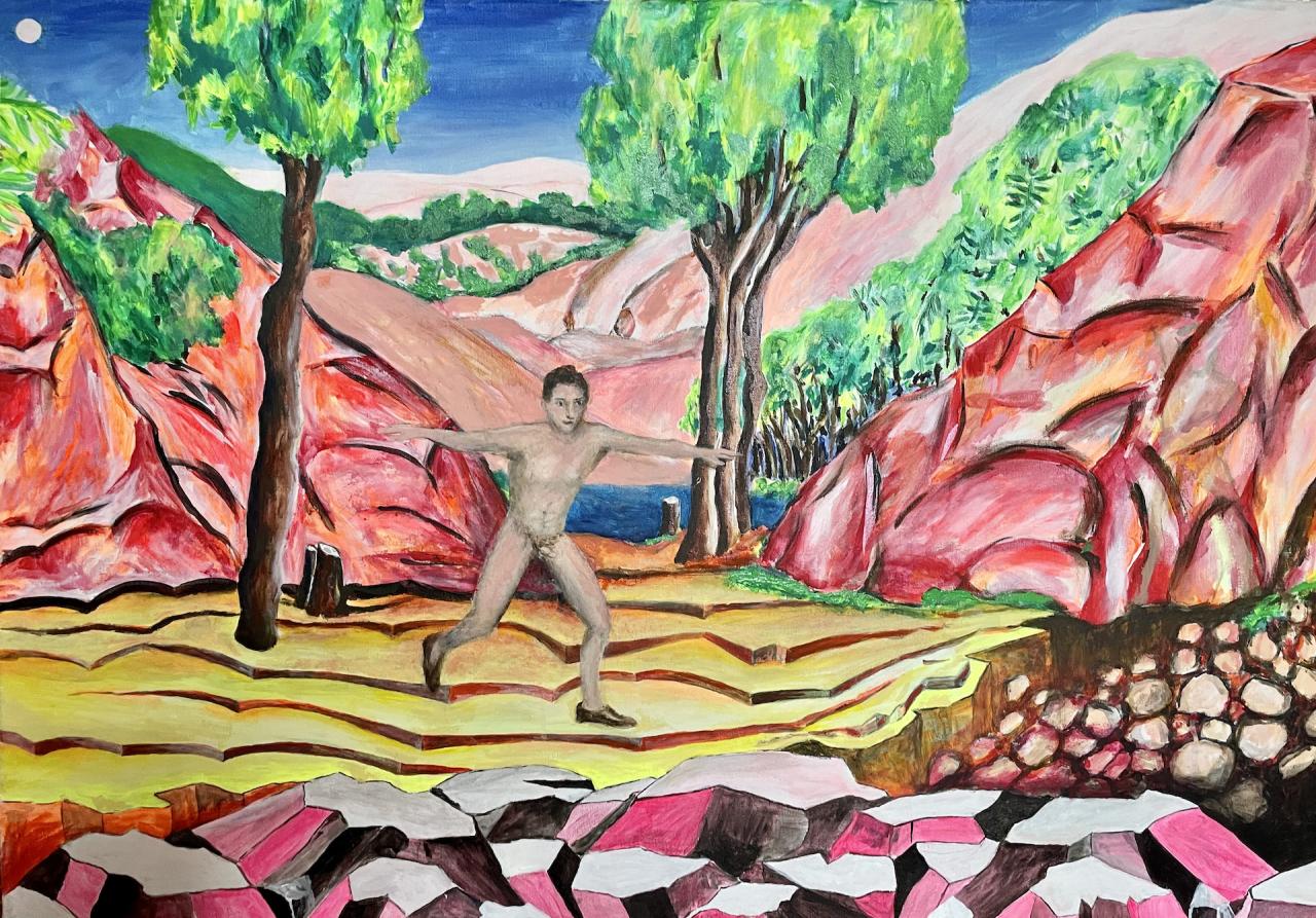 Pas de lune, 2023, peinture acrylique sur toile, 70 x 100 cm