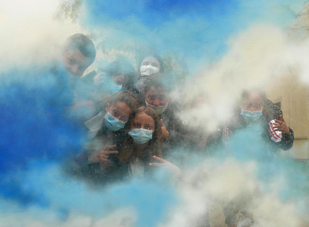 Vue de l’exposition Primal screen, 2020, Collège Léon Gambetta, Cahors, avec les élèves
