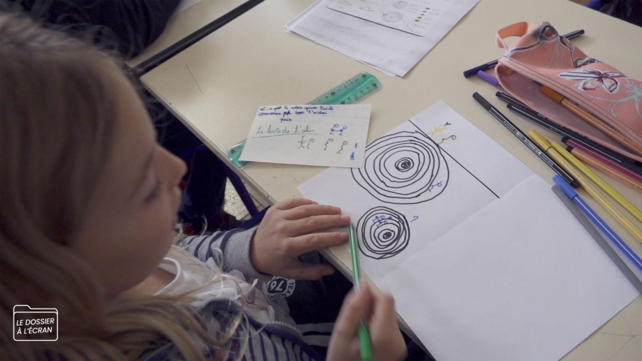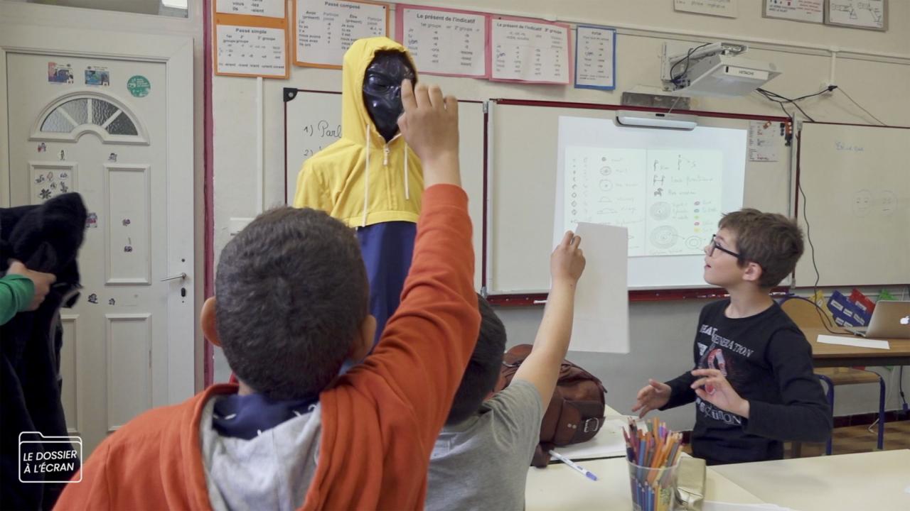 À ses deux tiers, mon film abordera le moment où le jeu de rôle vole en éclat. Quand, au lendemain de sa visite dans la classe, l’alien est arrêté faute de pouvoir présenter ses papiers. Les élèves qui ont alors développé une forte empathie pour lui ne supportent pas cette idée. Avec l’institutrice nous décidons de rétablir la vérité, ce qui donne lieu à une série d’entretiens filmés dans lesquels j’essaye d’amener les élèves à prendre conscience du jeu de rôle.