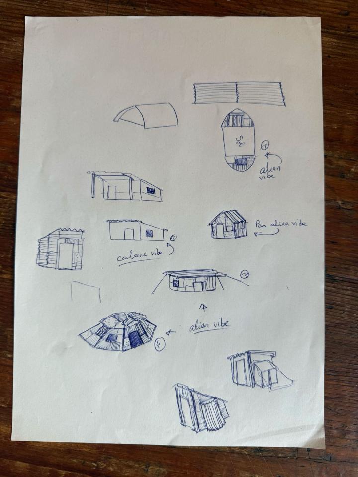 Croquis des patrons des cabanes du bidonville alien, 2025