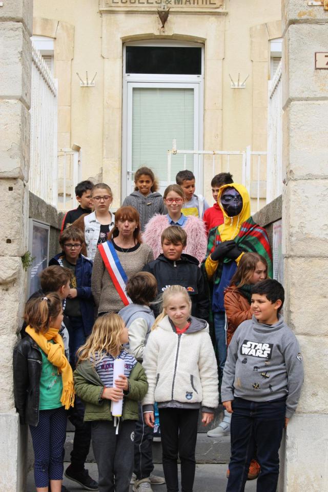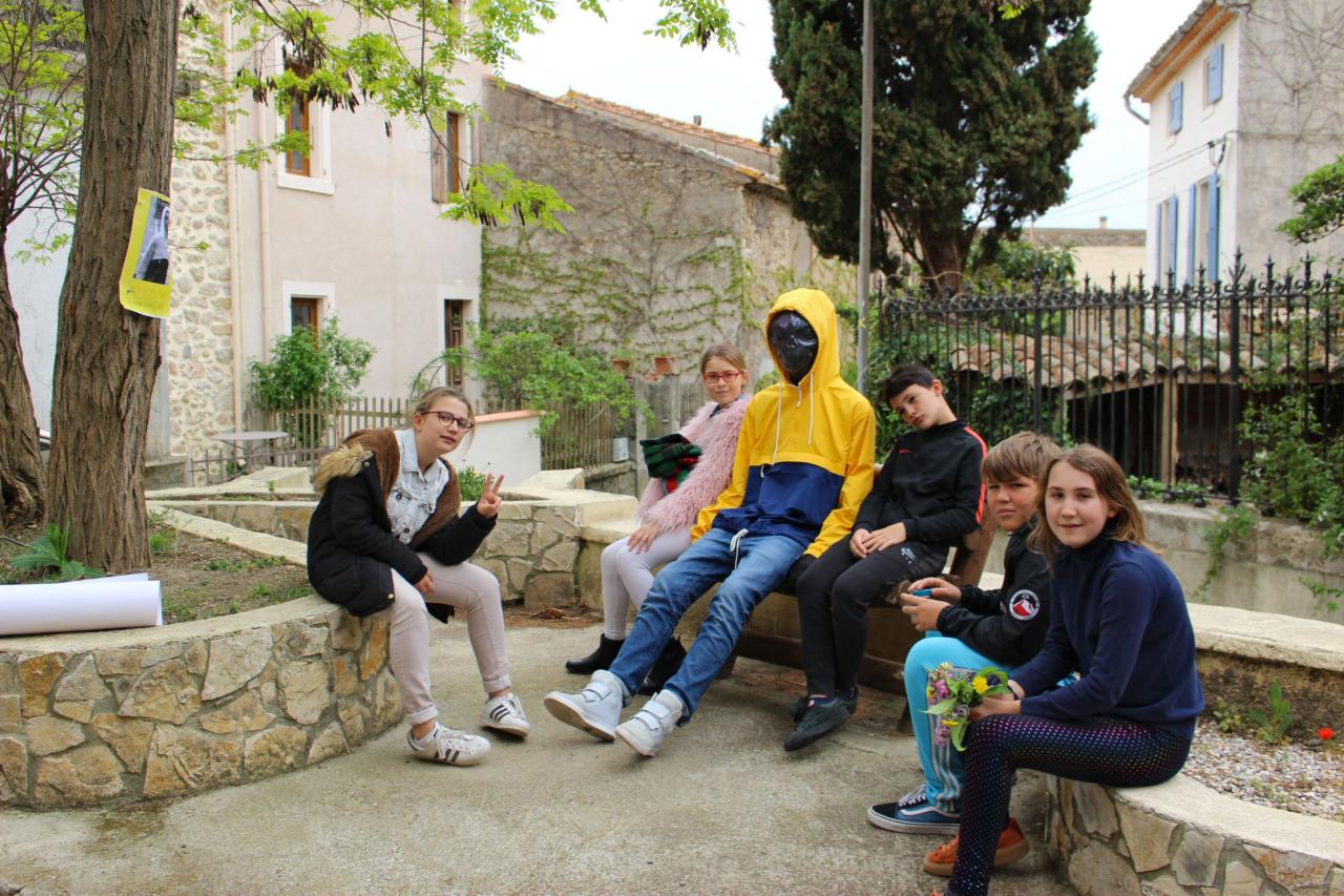 Avec les élèves Armand, Bonie, Cassandra, Esclarmonde, Hugo, Inès, Jade, Noham, Lorna, Louca, Mathéo, Miguel, Pablo, Reda, Rose, Samir et Théo de l'École élémentaire de Fraïssé des Corbières, Fraissé-des-Corbières