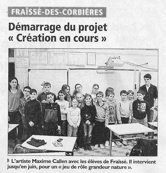 Dans le cadre de la résidence Création en cours portée par les Ateliers Médicis, École Primaire, Fraissé-des-Corbières