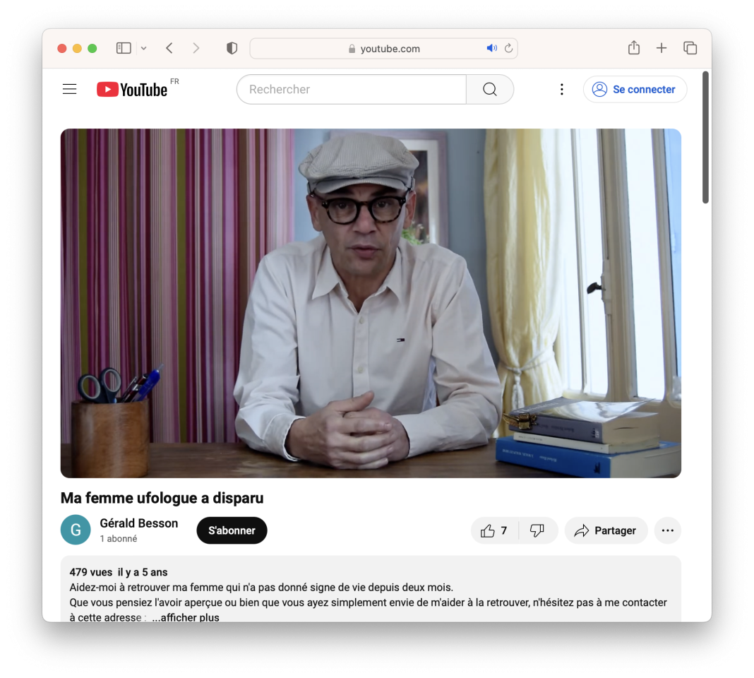 Ma femme ufologue a disparu, 2019, vidéo, capture de la vidéo de l’appel à l’aide d’un homme dont la femme ufologue a disparu introductive au jeu de rôle, publiée sur Youtube, en ligne