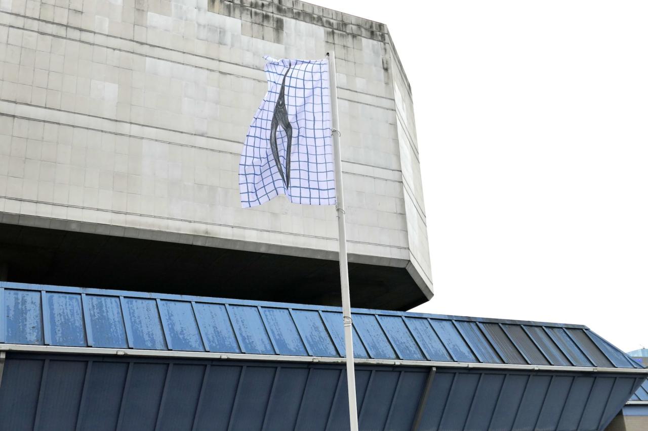 Usages Herleen, 2021, série de 6 drapeaux, photo Joséphine Kaeppelin
