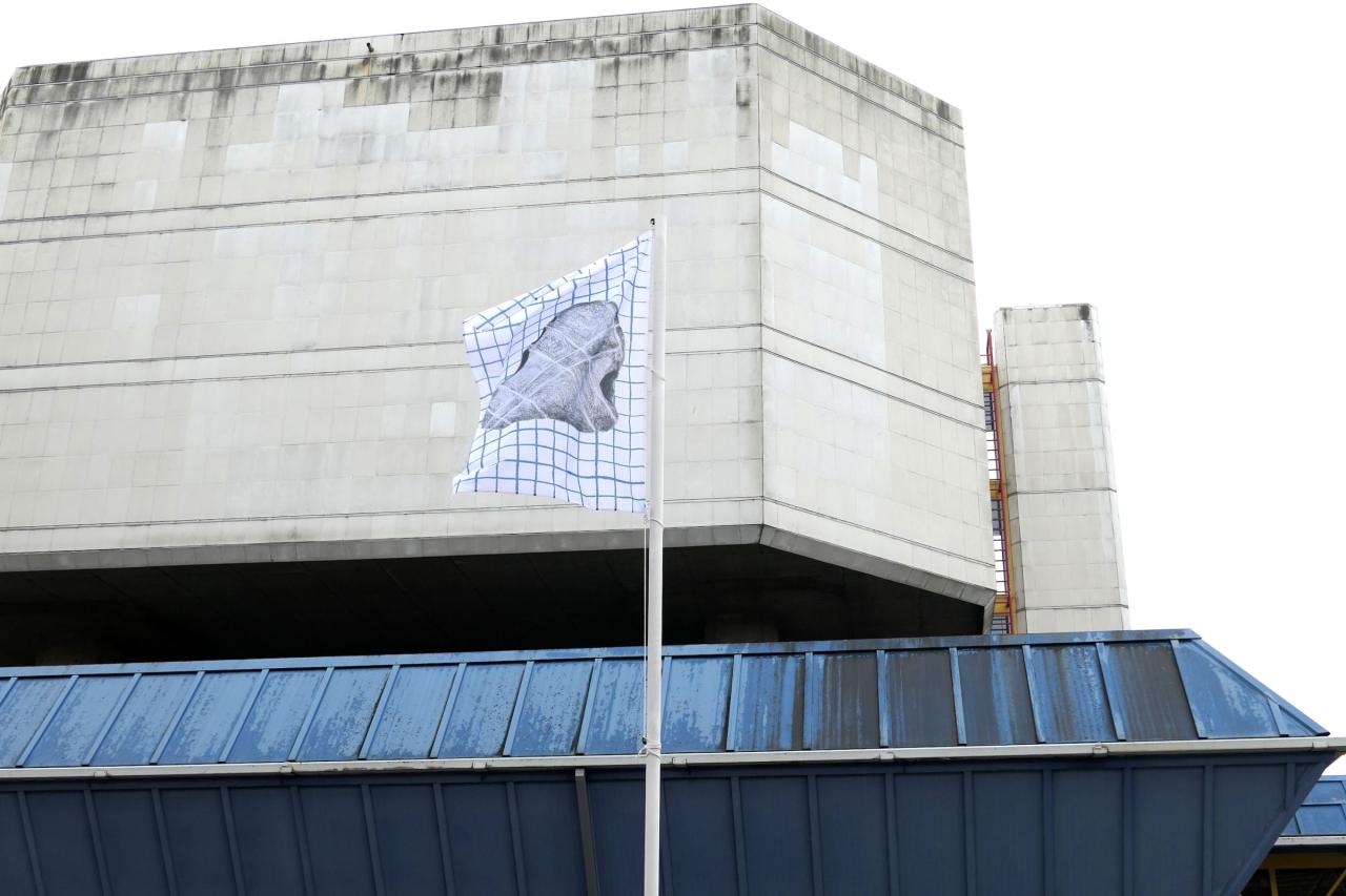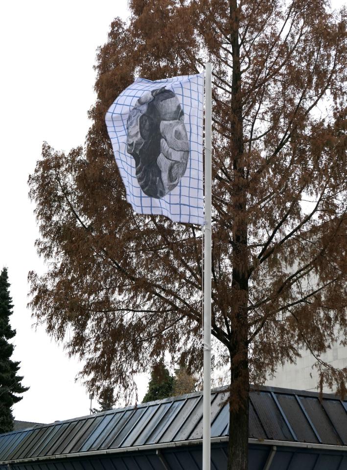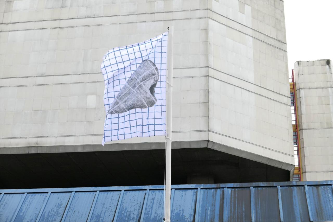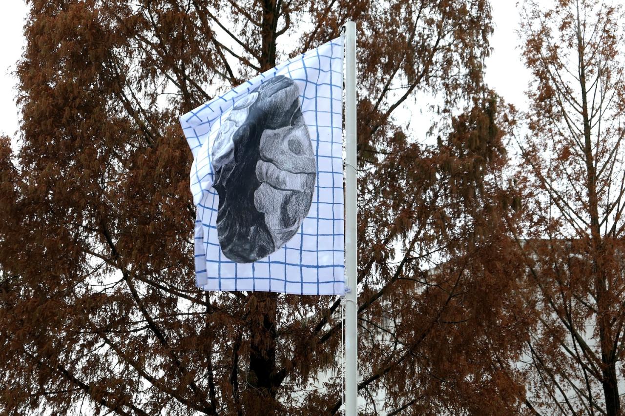 Usages Herleen, 2021, série de 6 drapeaux, photo Joséphine Kaeppelin.