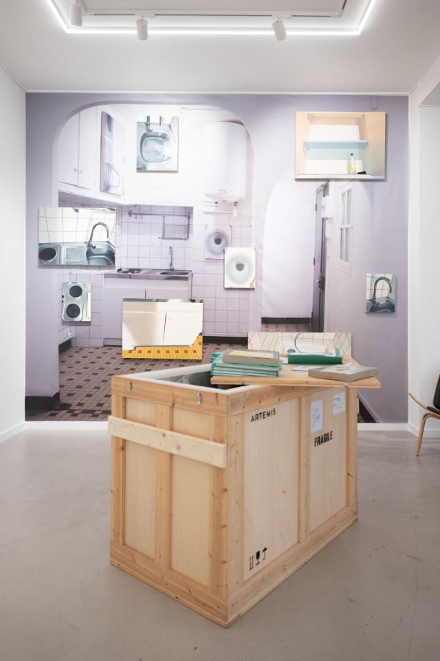 Le coffret Artemis - Traces de vie rassemble 18 reproductions des toiles de Sam Krack imprimées en risographie trois passages, un exemplaire de l’état des lieux d’entrée, un livre présentant les toiles exposées dans l’appartement lors de l’état des lieux de sortie face à des images de synthèse d’agence immobilière, un index des peintures et un texte de Pauline Faure.