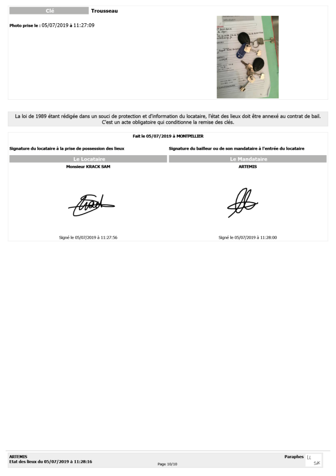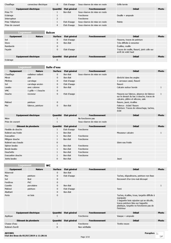 Artemis - Traces de vie, 2023, coffret, état des lieux d’entrée, détail