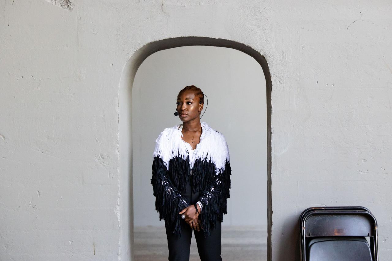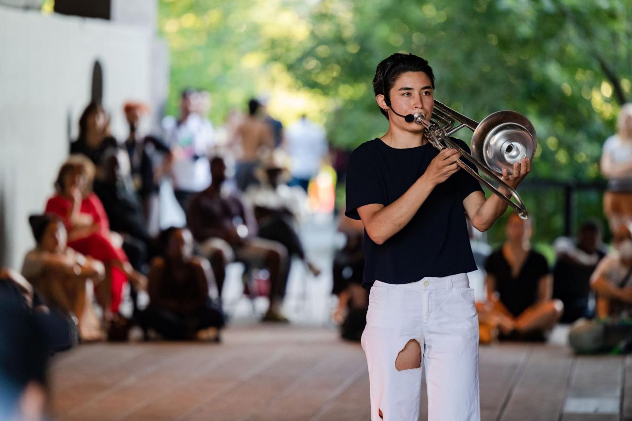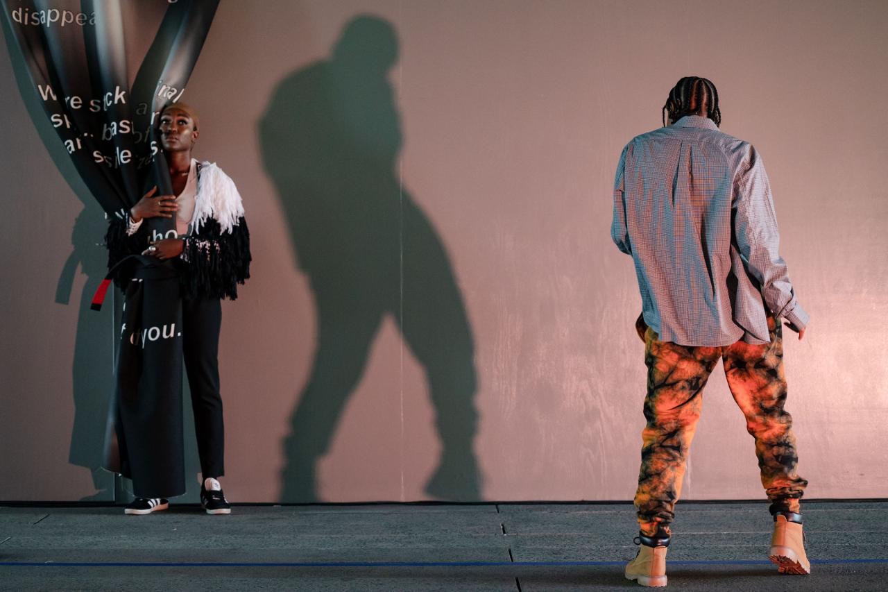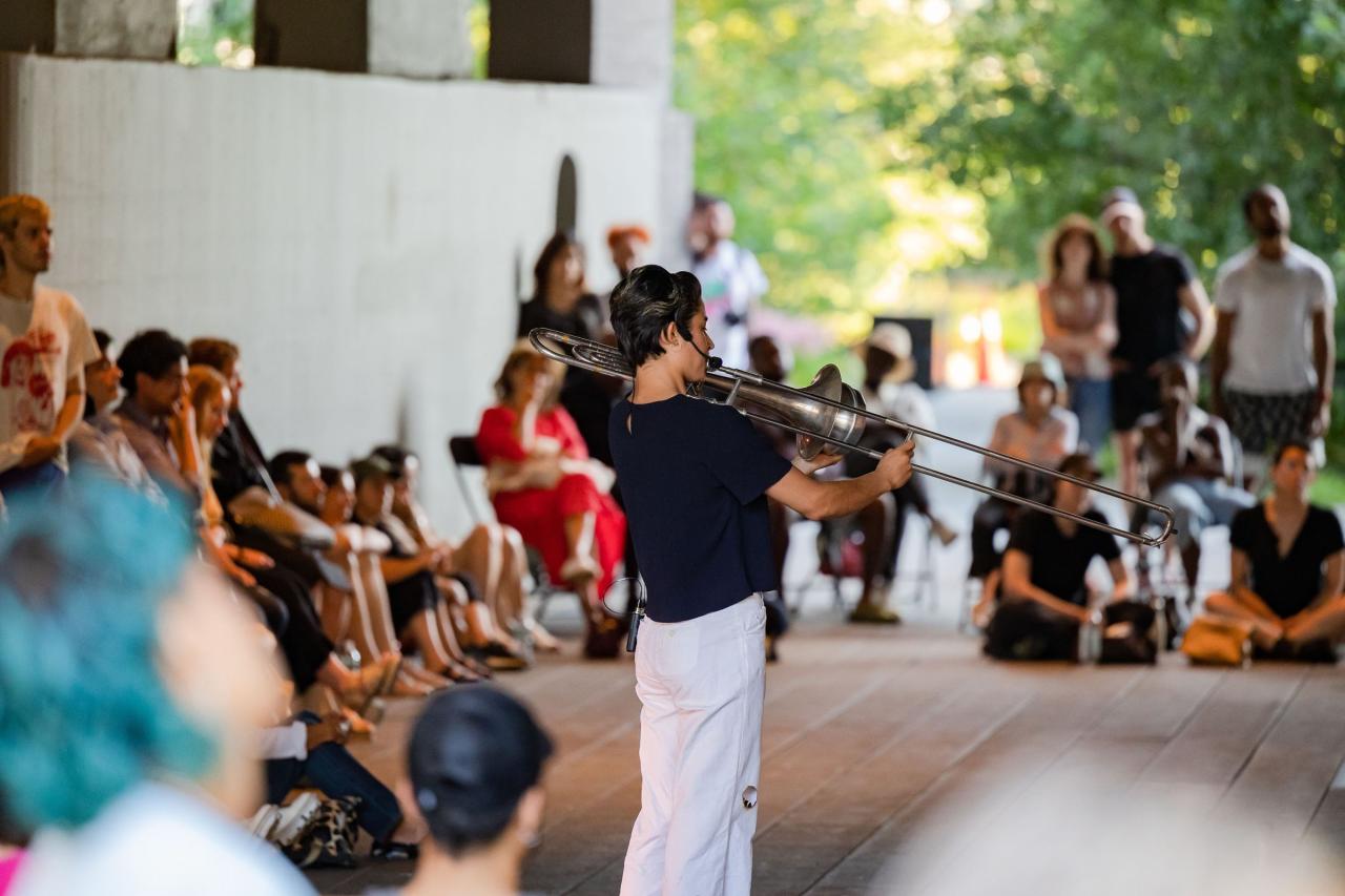 A fire circle for a public hearing témoigne de l’engagement permanent de Maheke à l’égard du potentiel du corps comme archive ; la performance aborde la manière dont l’histoire, la mémoire et l’identité sont formées. Dans cette œuvre, trois interprètes incarnent différents personnages comme s’ils étaient possédés par des entités fantomatiques. Leurs mouvements et leur dialogue explorent l’hypervisibilité et l’effacement tels qu’ils se manifestent dans la marginalisation historique et les mouvements politiques contemporains. Sur la High Line, Maheke présente cette performance captivante pour la première fois aux États-Unis.